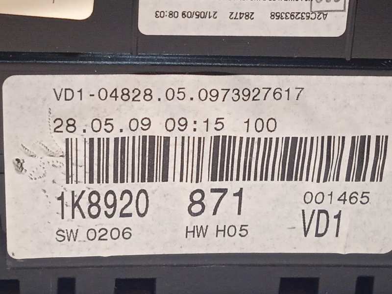 1K8920871 COMPTEUR DE VITESSE TABLEAU DE BORD / 6671391 POUR VOLKSWAGEN SCIROCCO