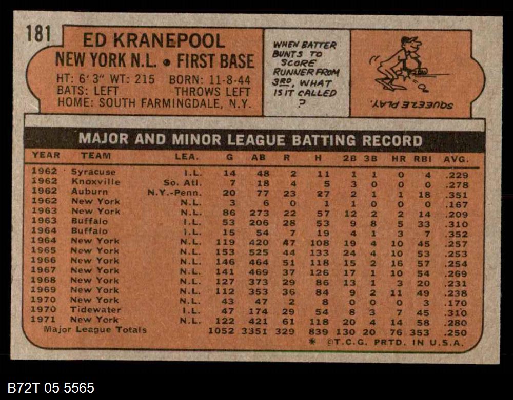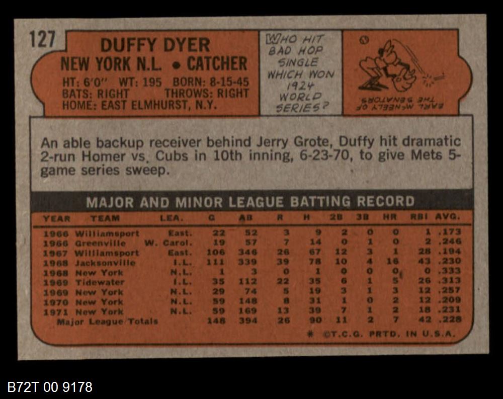 | 1972 Topps #54 - Bud Harrelson In Action | 6.5 - EX/MT+ | Front | Back |