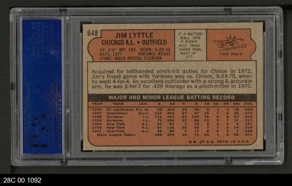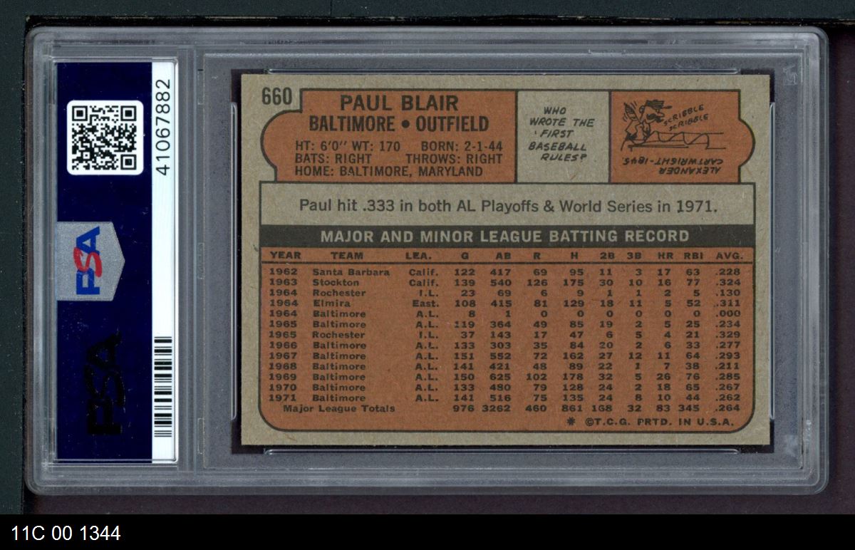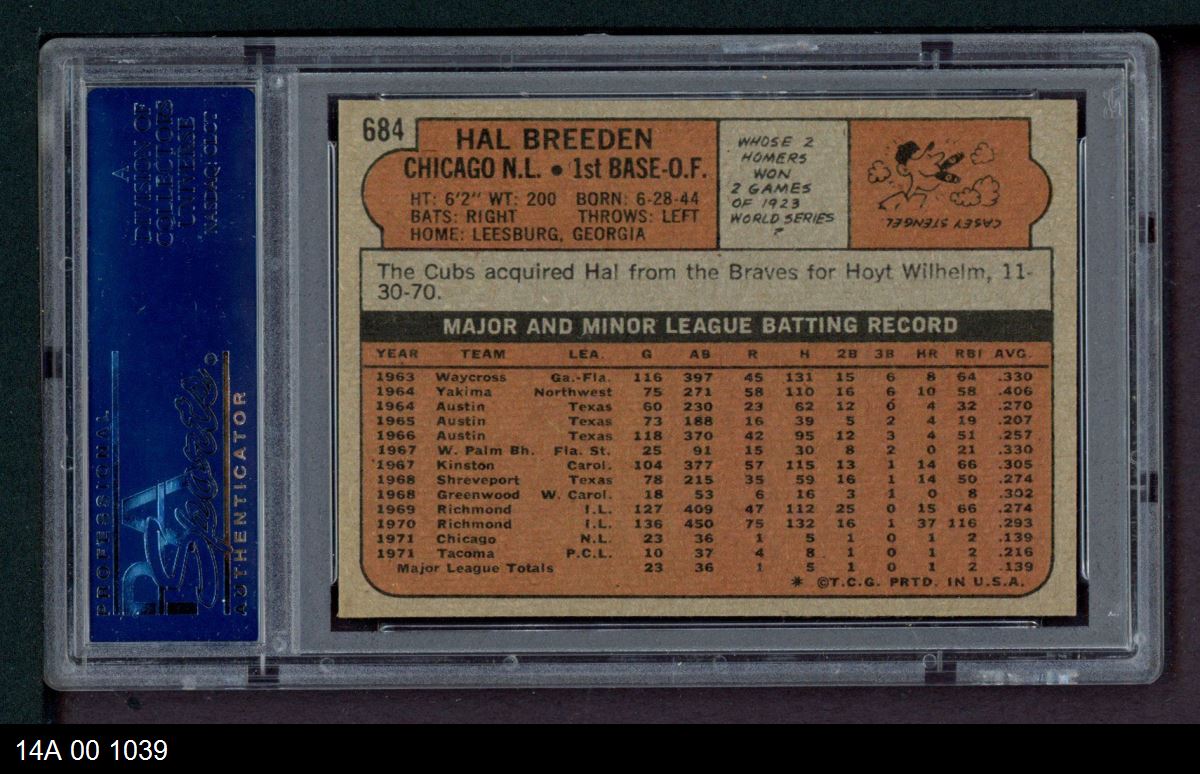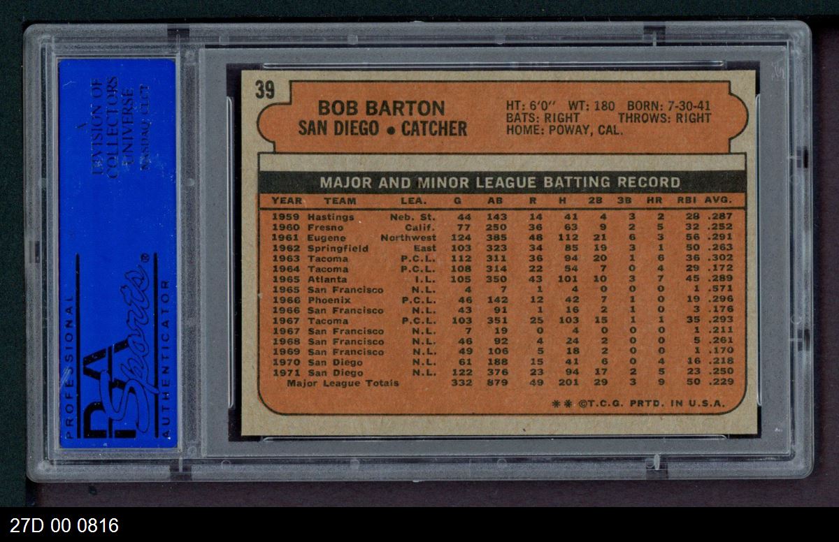 | 1972 Topps #39 Bob Barton | PSA 8 - NM/MT | Front | Back |
