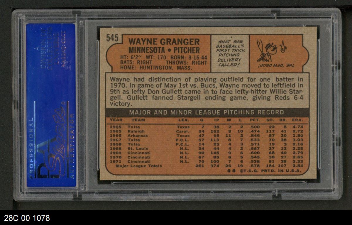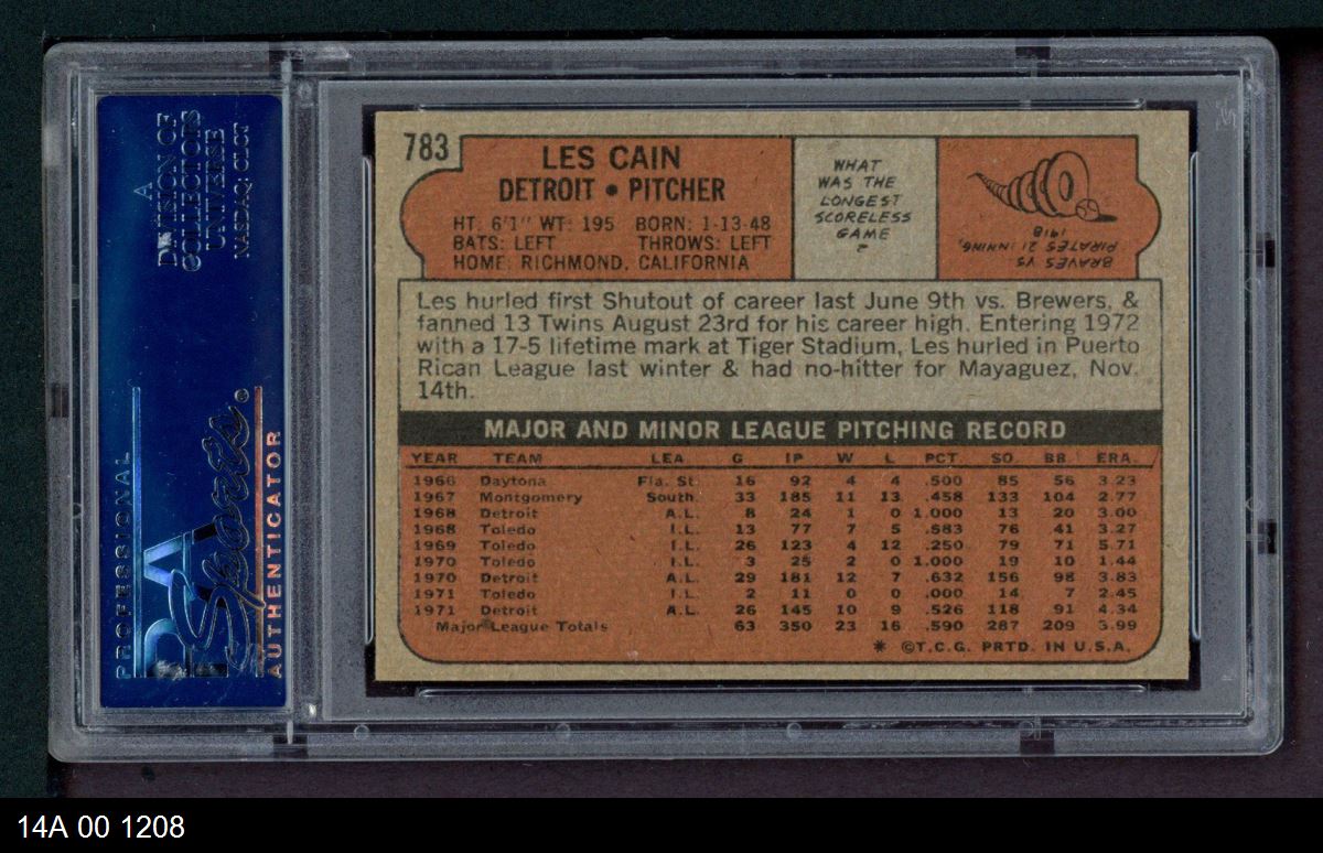 | 1972 Topps #783 Les Cain | PSA 8 - NM/MT | Front | Back |