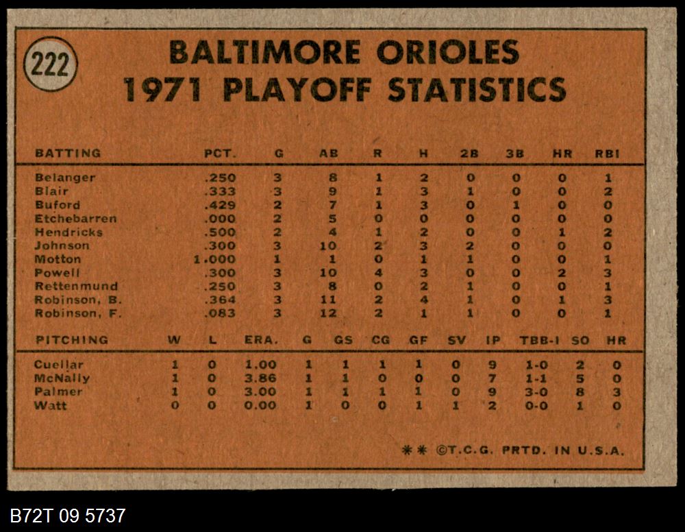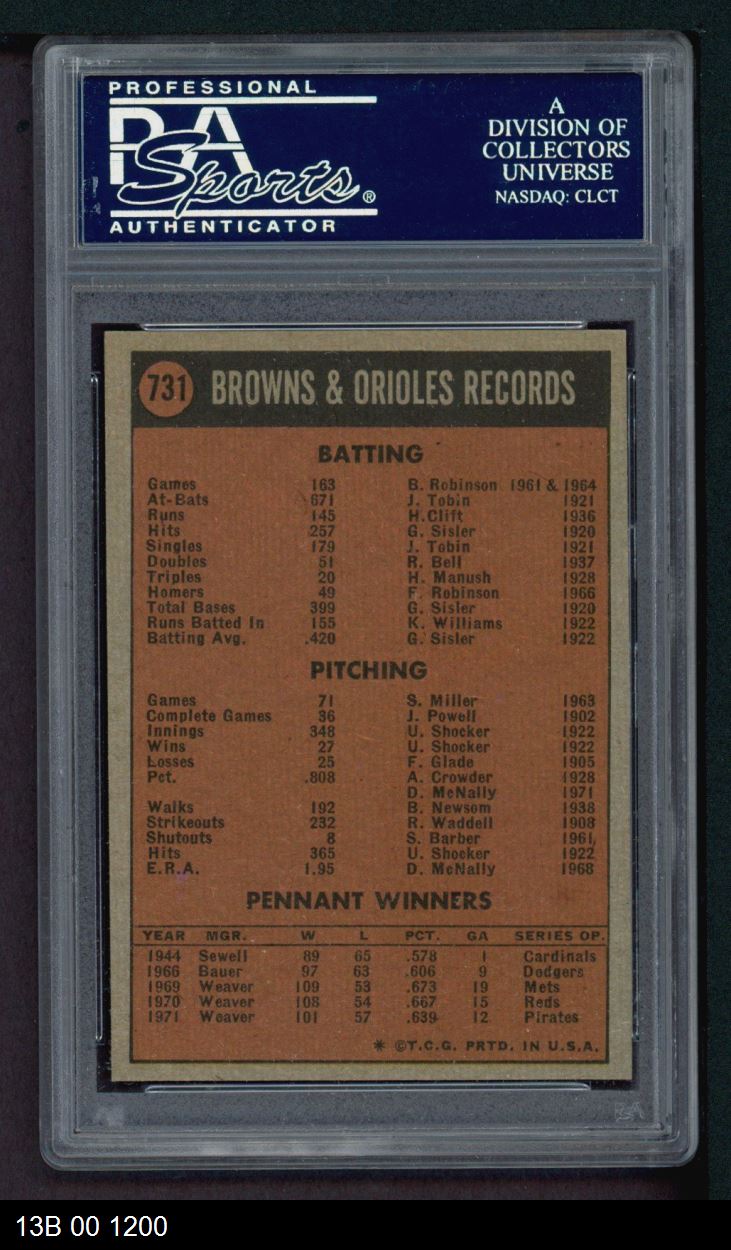 | 1972 Topps #731 Orioles Team | PSA 7 - NM | Front | Back |