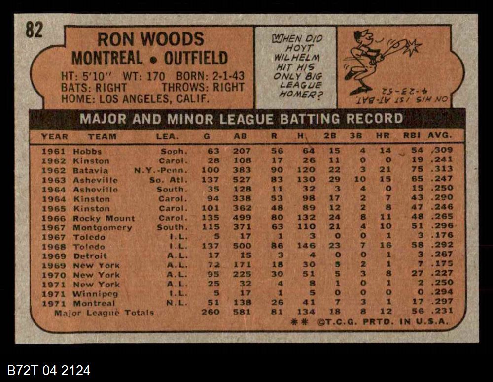 | 1972 Topps #82 Ron Woods | 7 - NM | Front | Back |