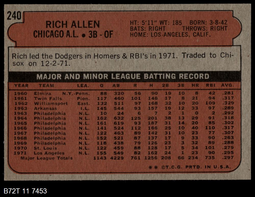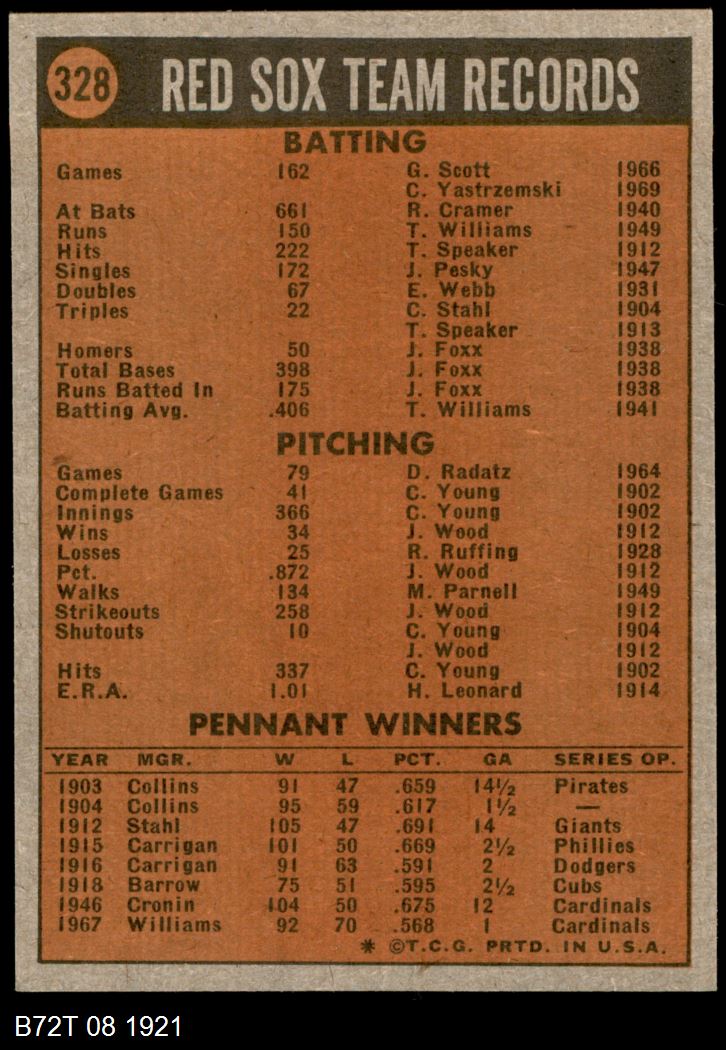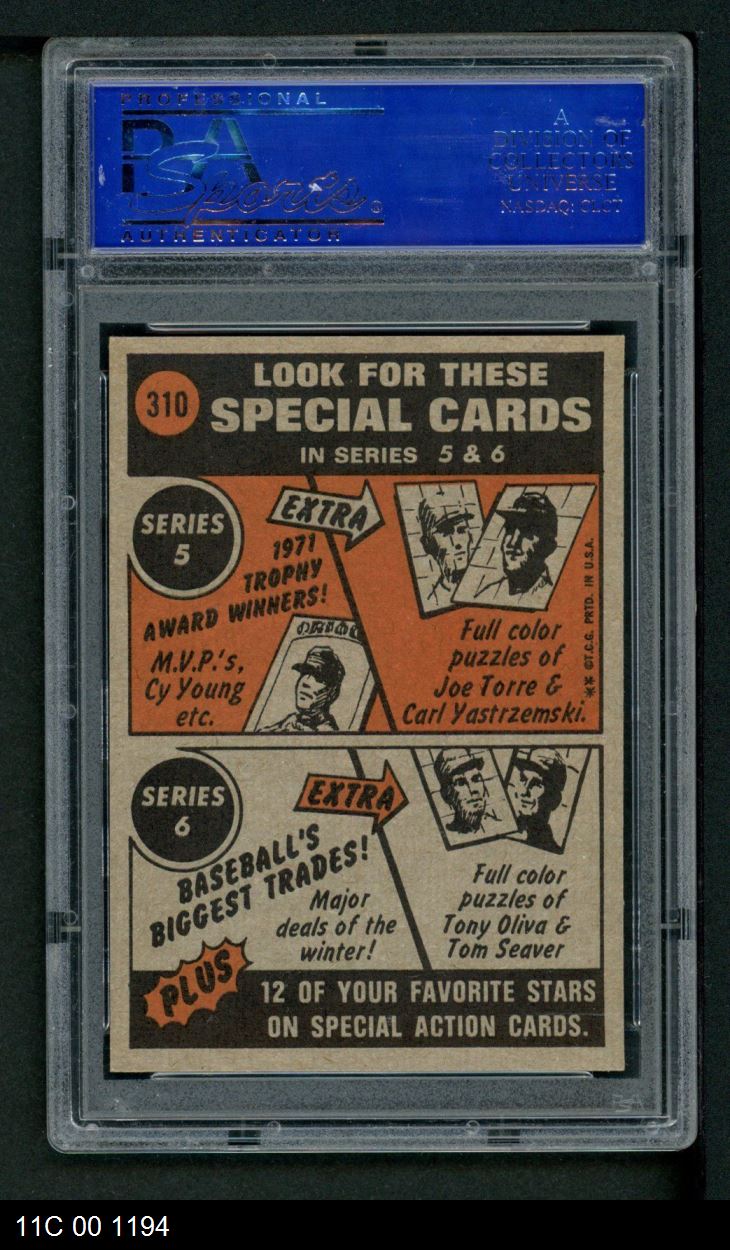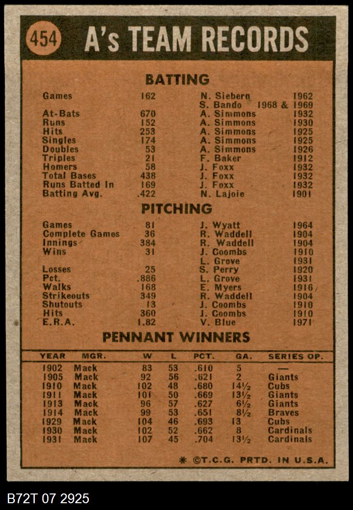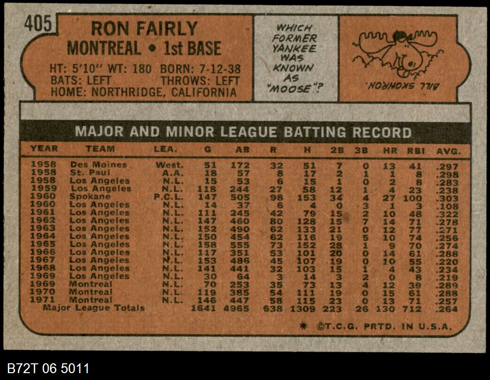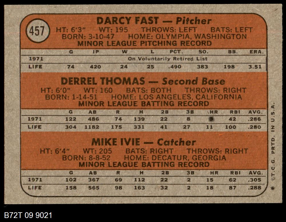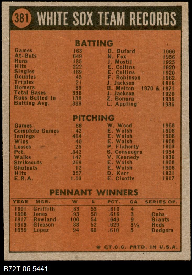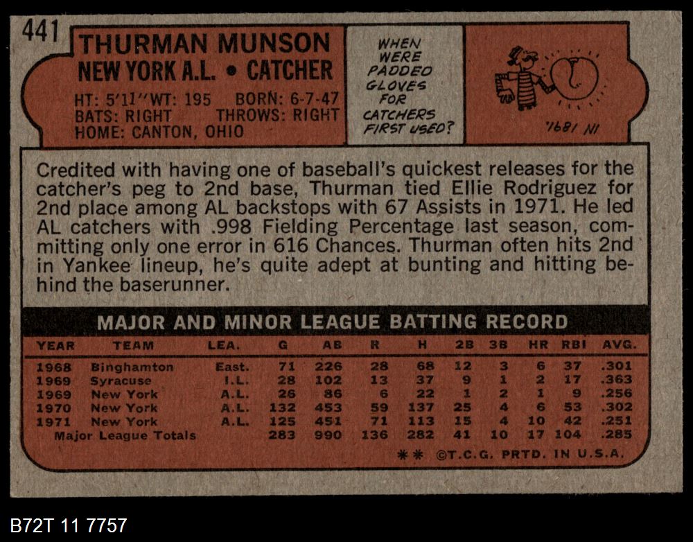 There are many great sub-series found within the 1972 Topps baseball card set including: League Leaders (85-96), Playoffs cards (221-222), World Series (223-230), Boyhood Photos (341-348 & 491-498), Awards and Trophy's cards (621-626), and Traded cards (751-757). "In Action" cards are also found throughout the set. The important rookie cards found in the 1972 Topps set include:?Carlton Fisk and Ron Cey.?