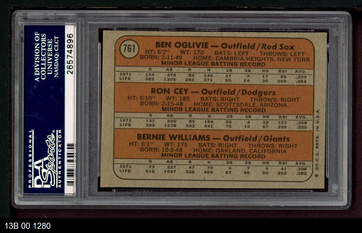 | 1972 Topps #761 - Ron Cey / Ben Oglivie / Bernie Williams AL - NL Rookies | PSA 7 - NM | Front | Back |