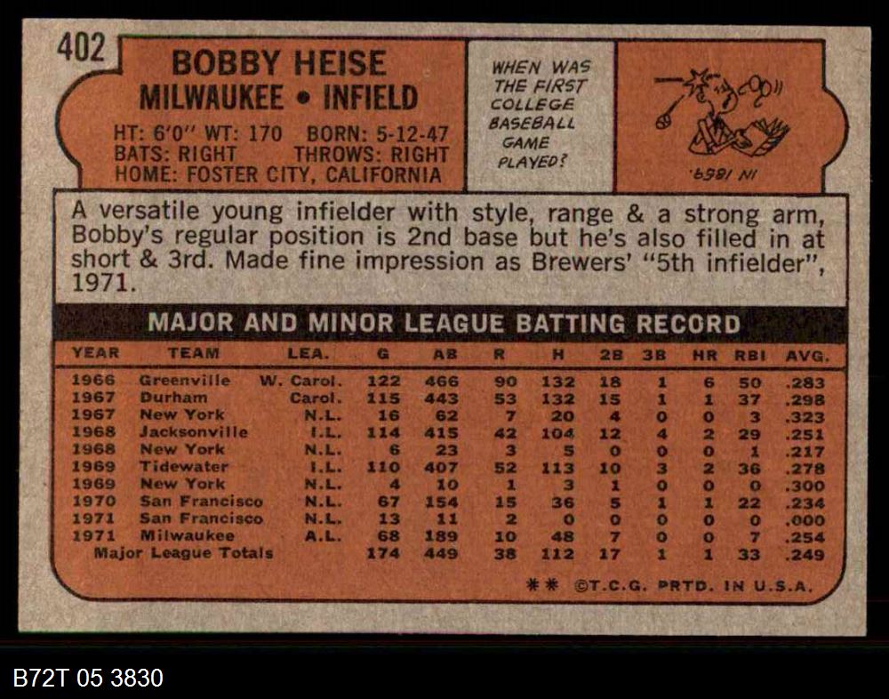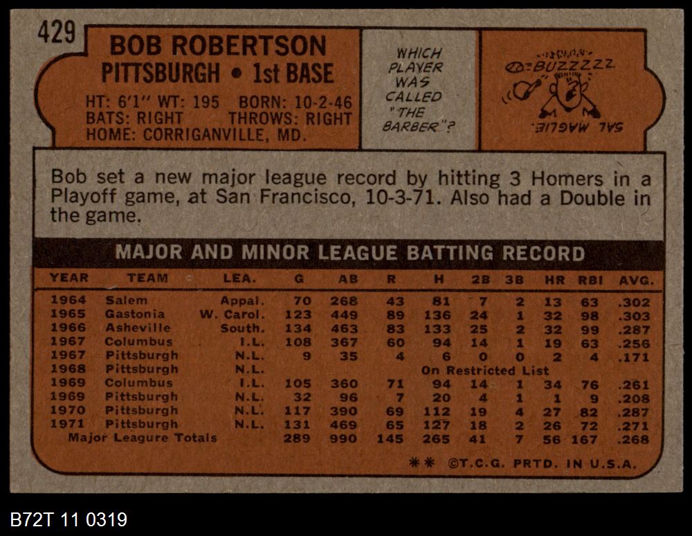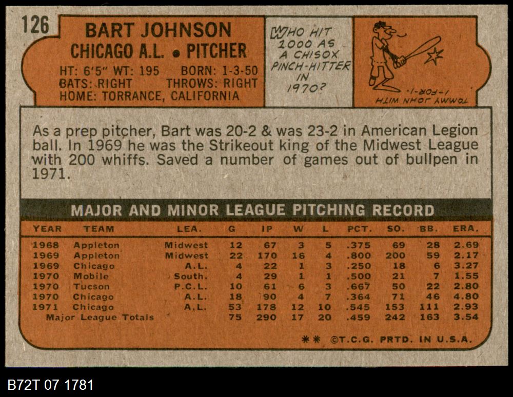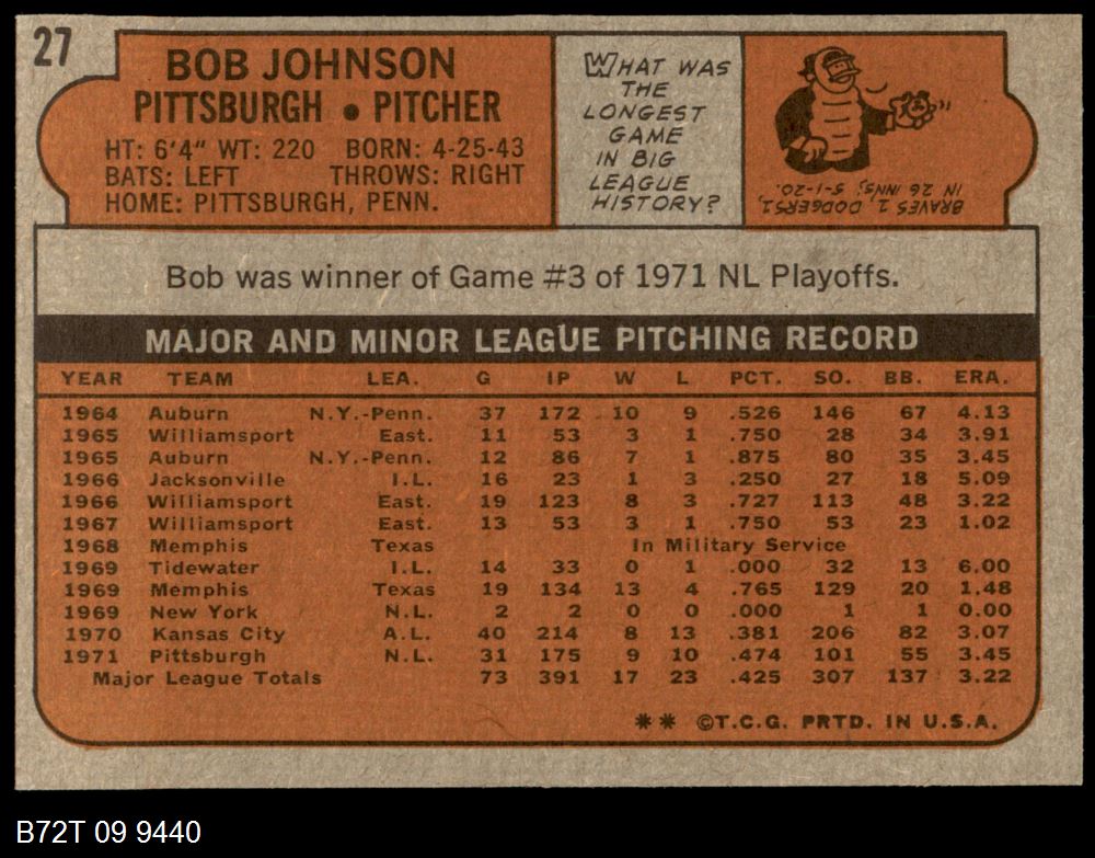 | 1972 Topps #27 Bob Johnson | 7 - NM | Front | Back |