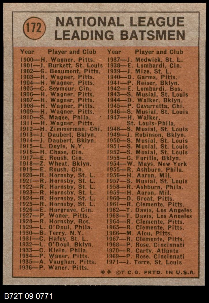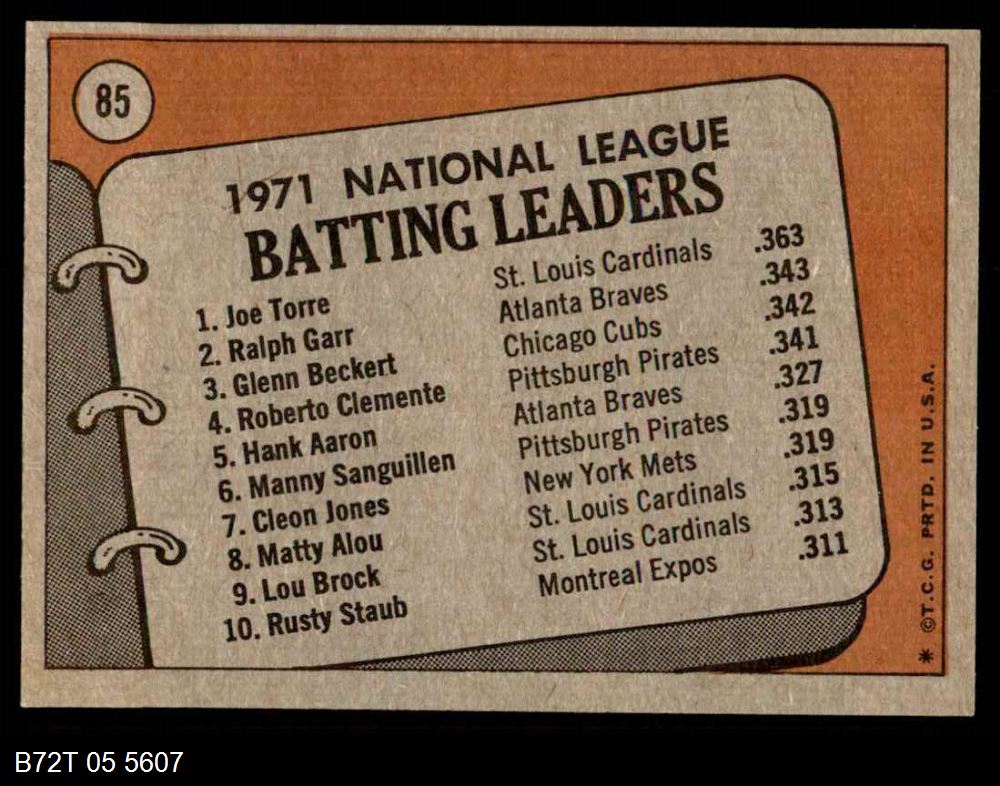 | 1972 Topps #85 - Glenn Beckert / Ralph Garr / Joe Torre NL Batting Leaders | 6 - EX/MT | Front | Back |