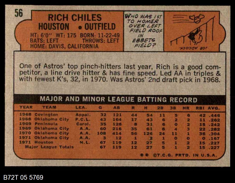 | 1972 Topps #56 Rich Chiles | 8 - NM/MT | Front | Back |