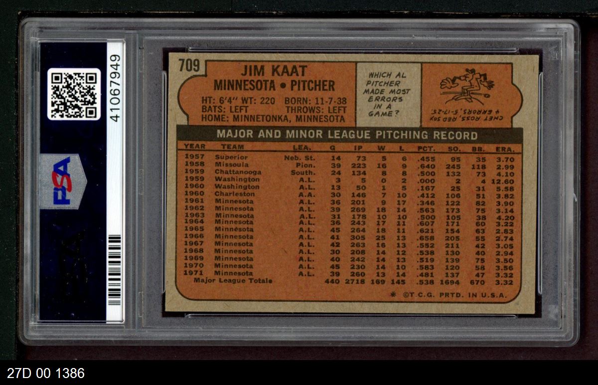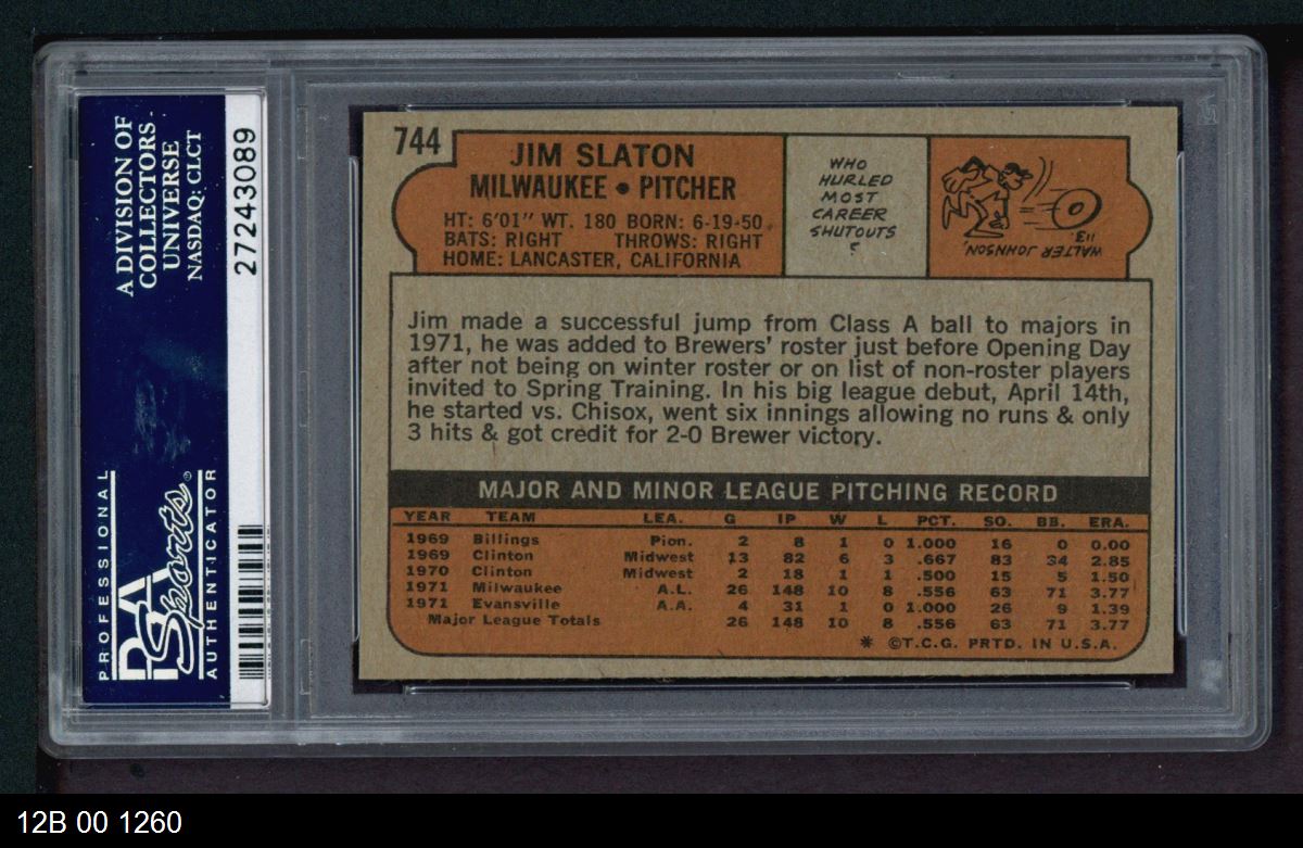 | 1972 Topps #744 Jim Slaton | PSA 8 - NM/MT | Front | Back |