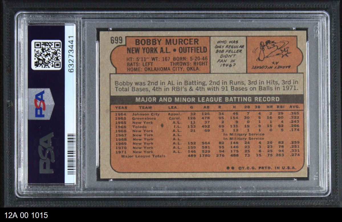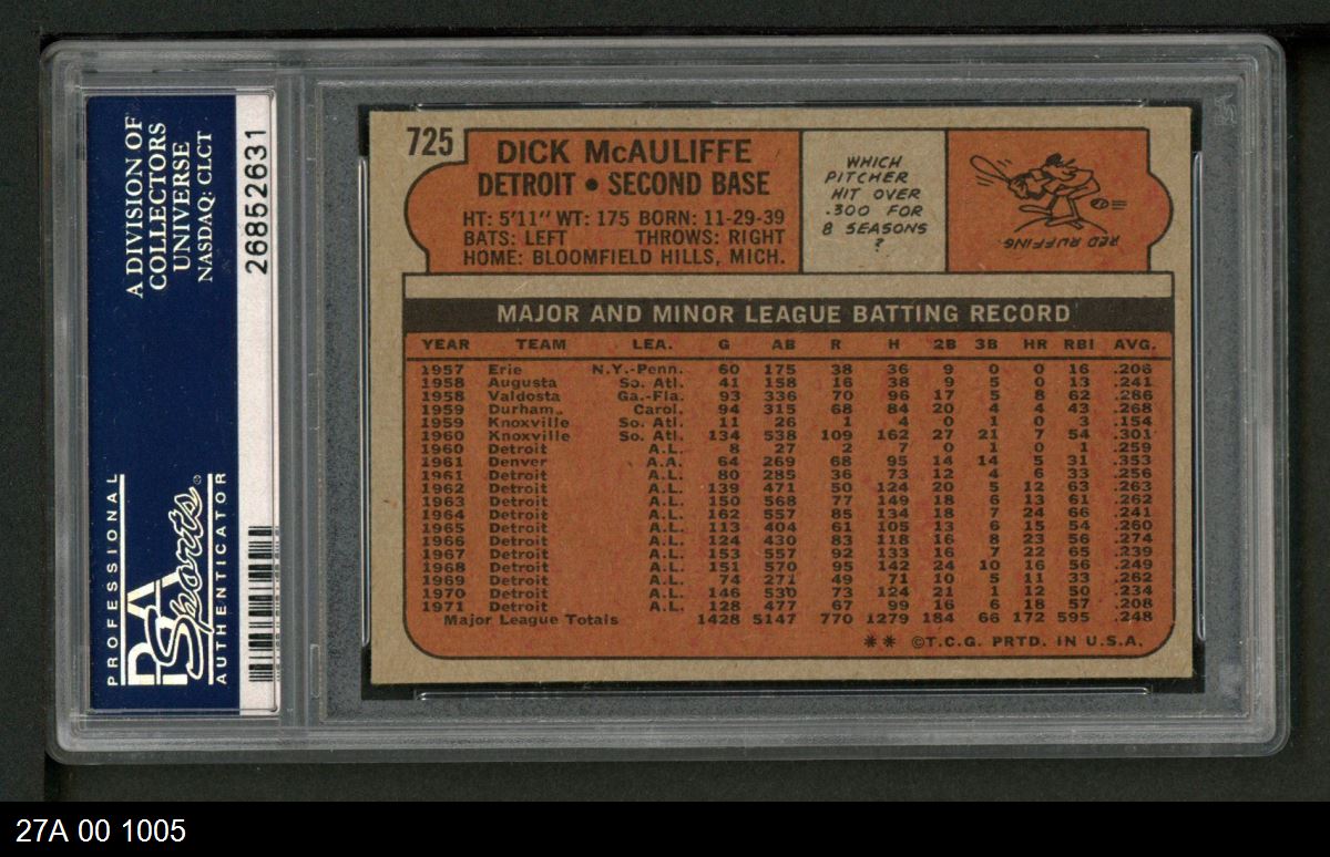 | 1972 Topps #725 Dick McAuliffe | PSA 8 - NM/MT | Front | Back |