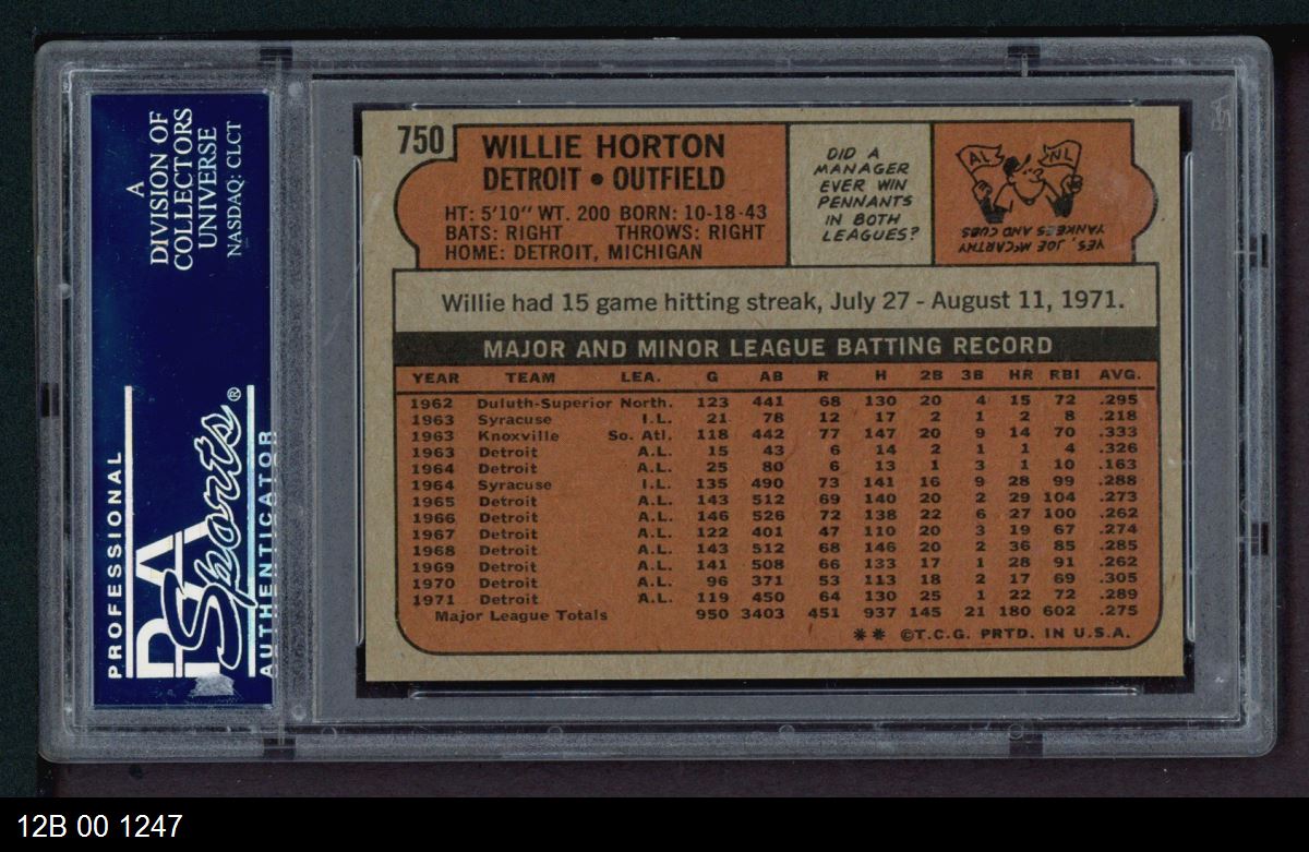 | 1972 Topps #750 Willie Horton | PSA 8 - NM/MT | Front | Back |