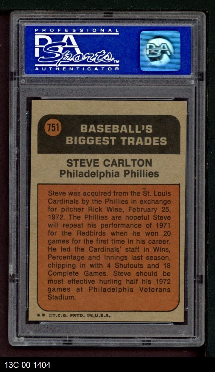 | 1972 Topps #751 - Steve Carlton Traded | PSA 8 - NM/MT | Front | Back |
