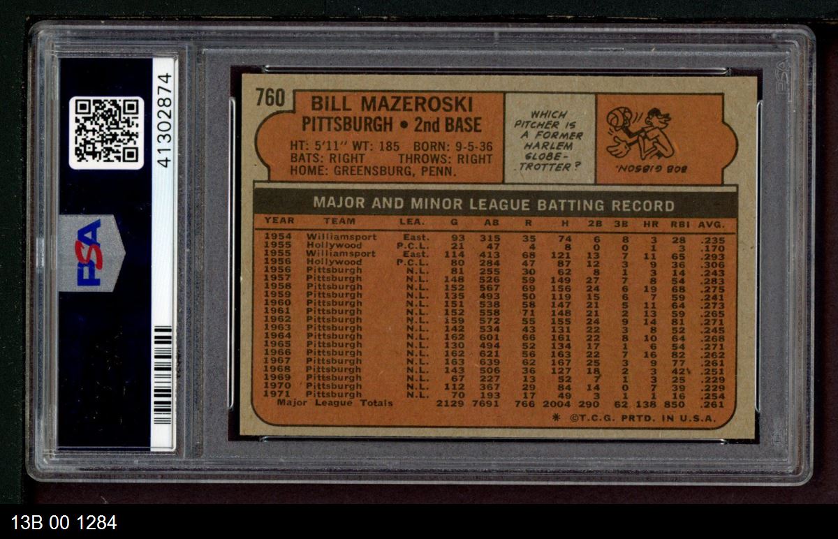 | 1972 Topps #760 Bill Mazeroski | PSA 8 - NM/MT | Front | Back |