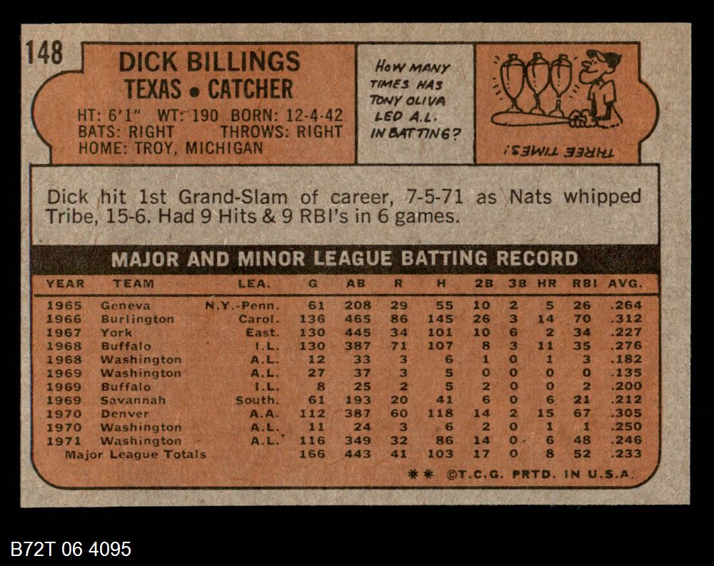 | 1972 Topps #52 - Harmon Killebrew In Action | 6 - EX/MT | Front | Back |