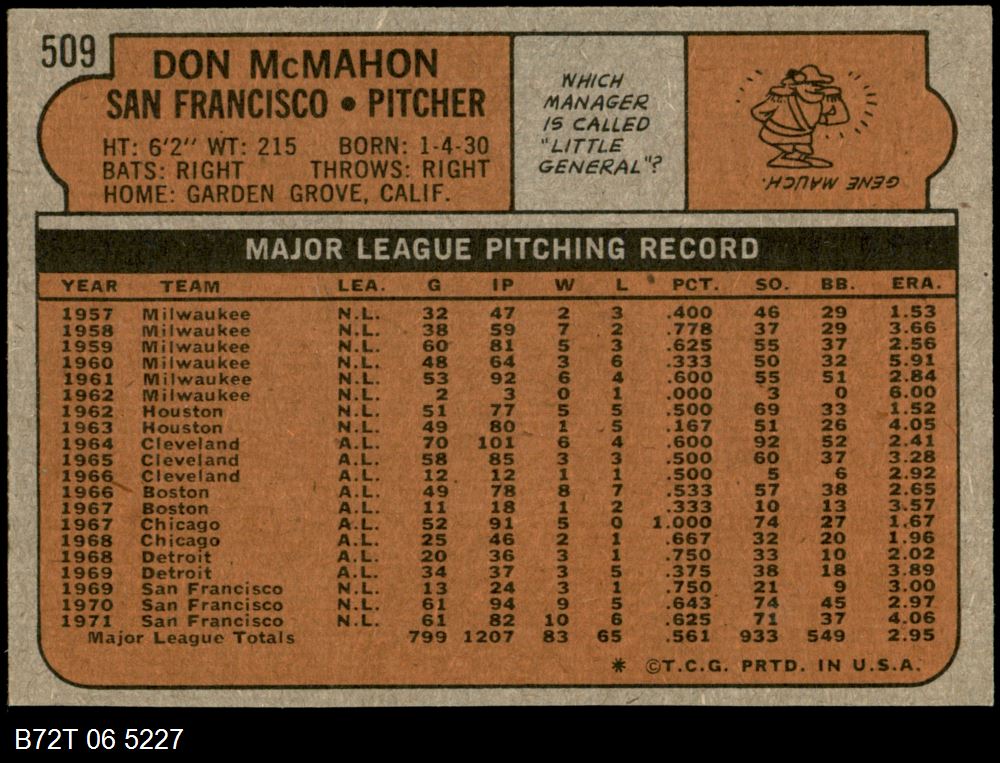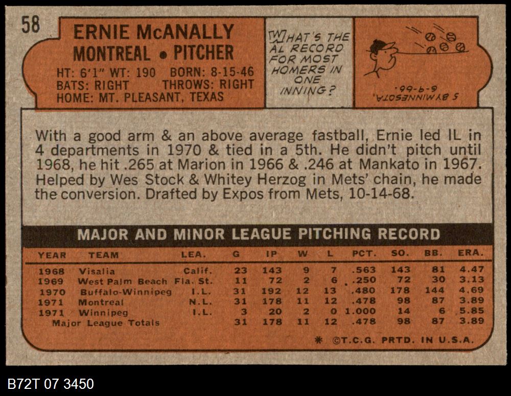 | 1972 Topps #58 Ernie McAnally | 8 - NM/MT | Front | Back |