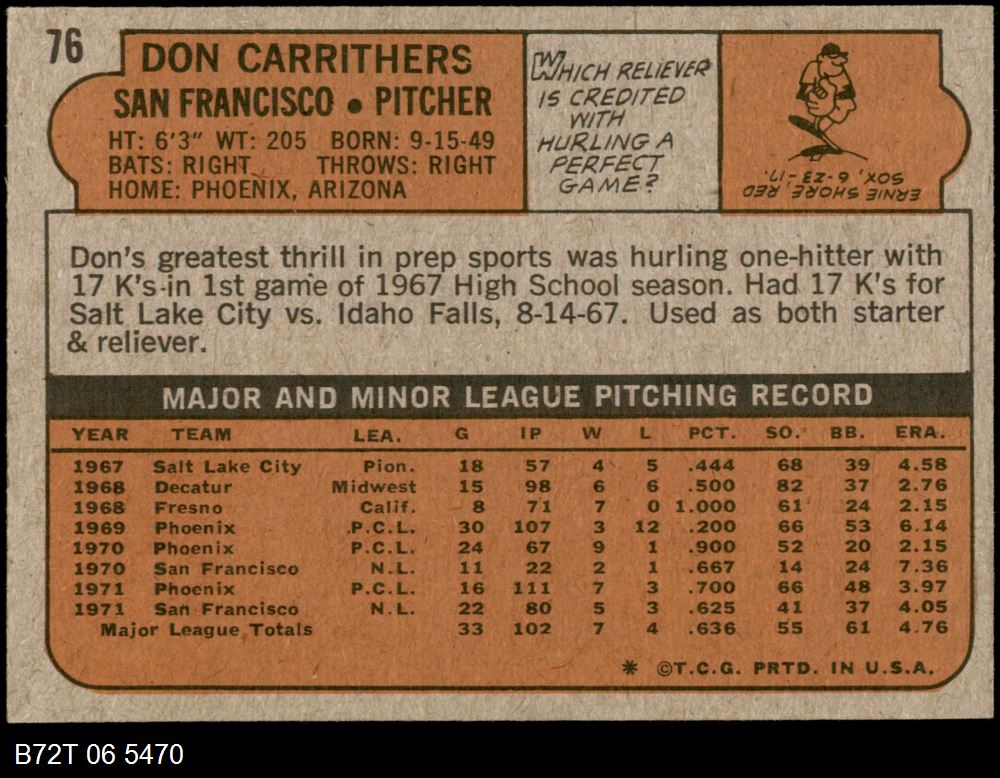 | 1972 Topps #76 Don Carrithers | 8 - NM/MT | Front | Back |