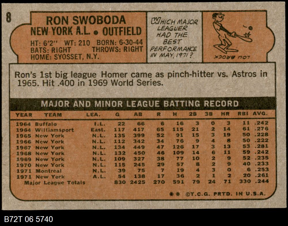 | 1972 Topps #8 Ron Swoboda | 7.5 - NM+ | Front | Back |