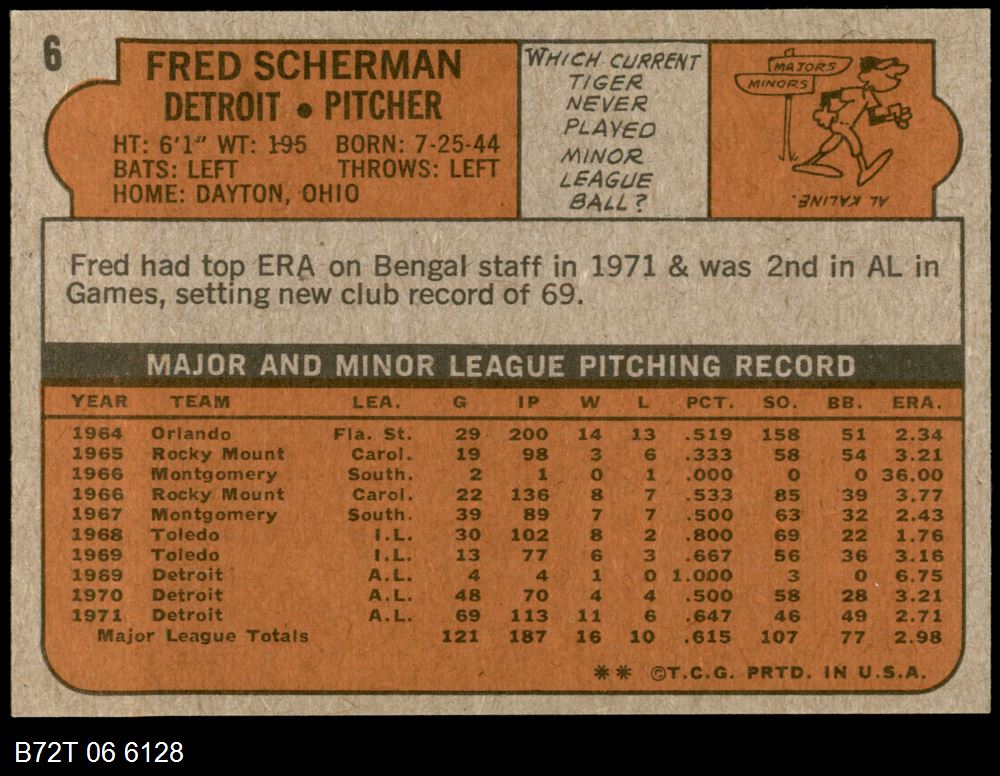 | 1972 Topps #6 Fred Scherman | 8 - NM/MT | Front | Back |