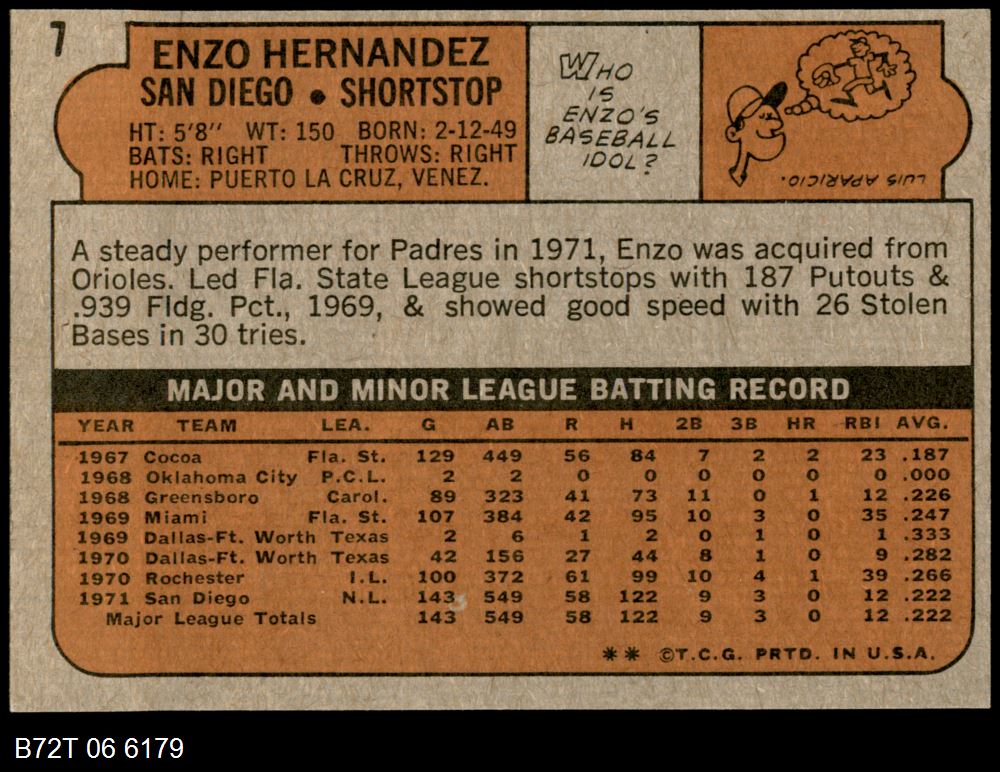 | 1972 Topps #7 Enzo Hernandez | 8 - NM/MT | Front | Back |