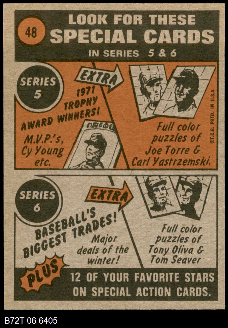 | 1972 Topps #48 - John Ellis In Action | 7 - NM | Front | Back |