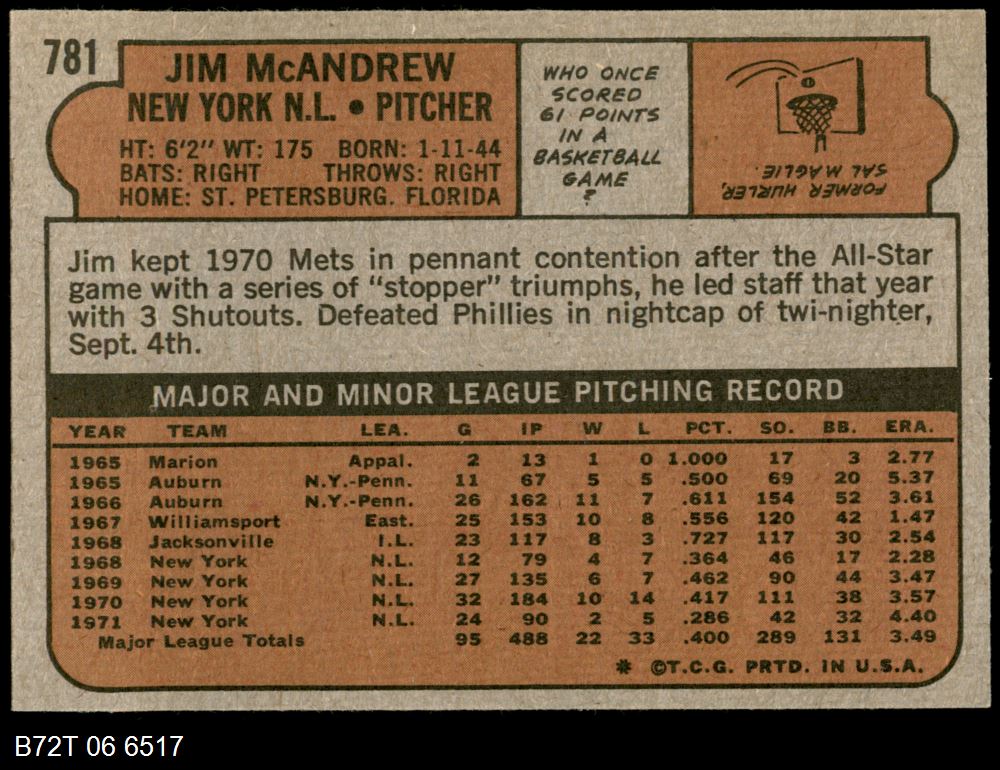 | 1972 Topps #781 Jim McAndrew | 8 - NM/MT | Front | Back |