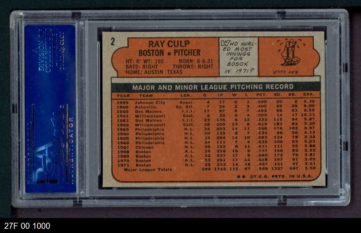 | 1972 Topps #2 Ray Culp | PSA 8 - NM/MT | Front | Back |