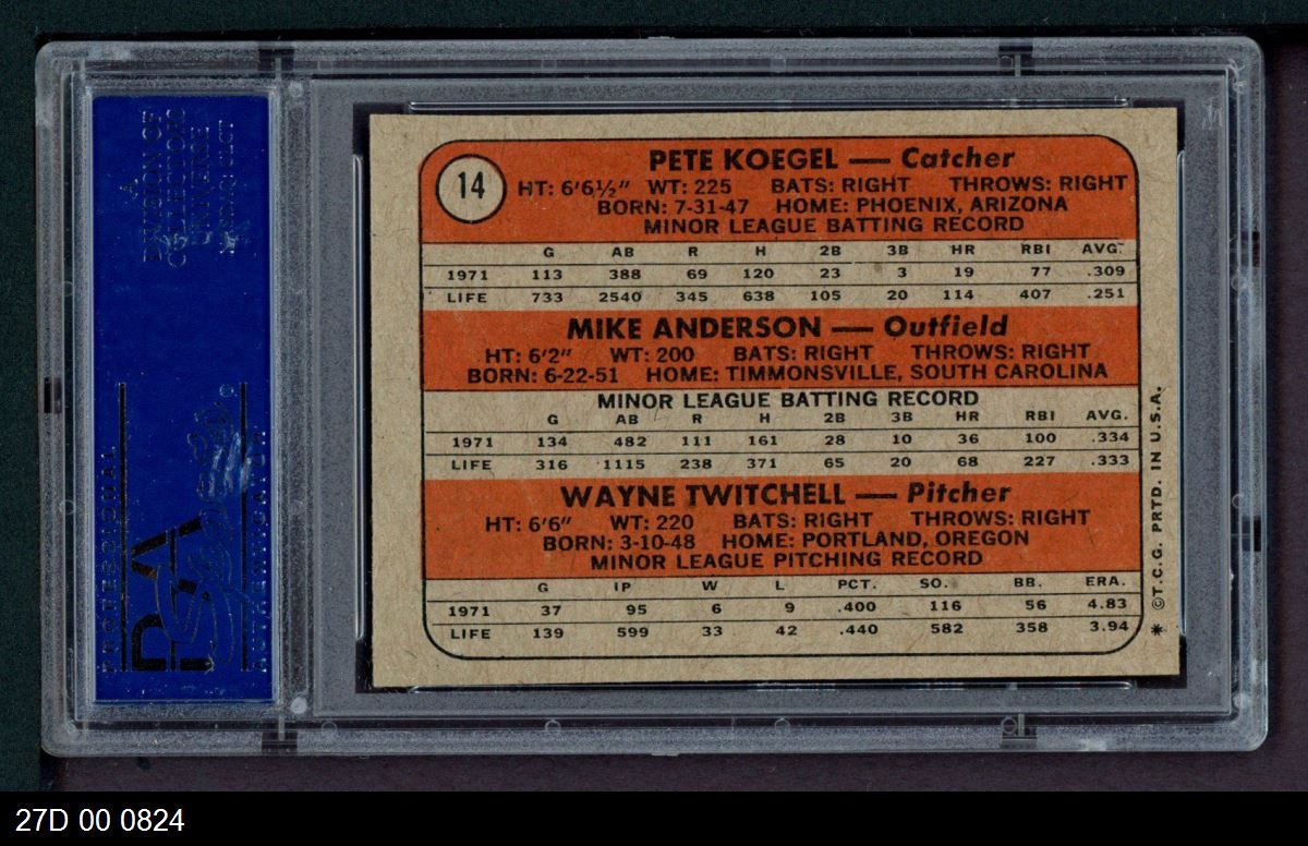 | 1972 Topps #14 - Mike Anderson / Pete Koegel / Wayne Twitchell Phillies Rookies | PSA 8 - NM/MT | Front | Back |