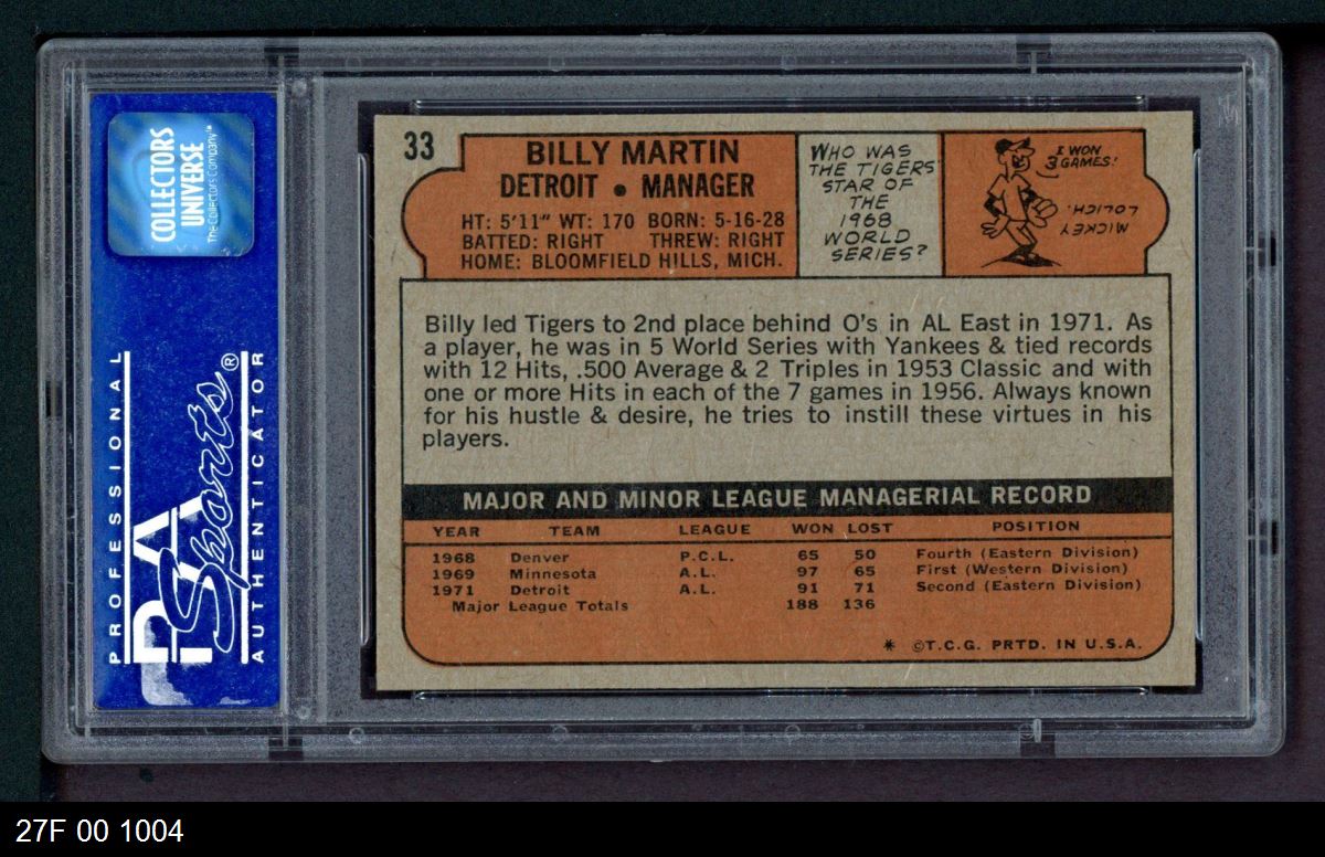 | 1972 Topps #33 Billy Martin | PSA 8 - NM/MT | Front | Back |