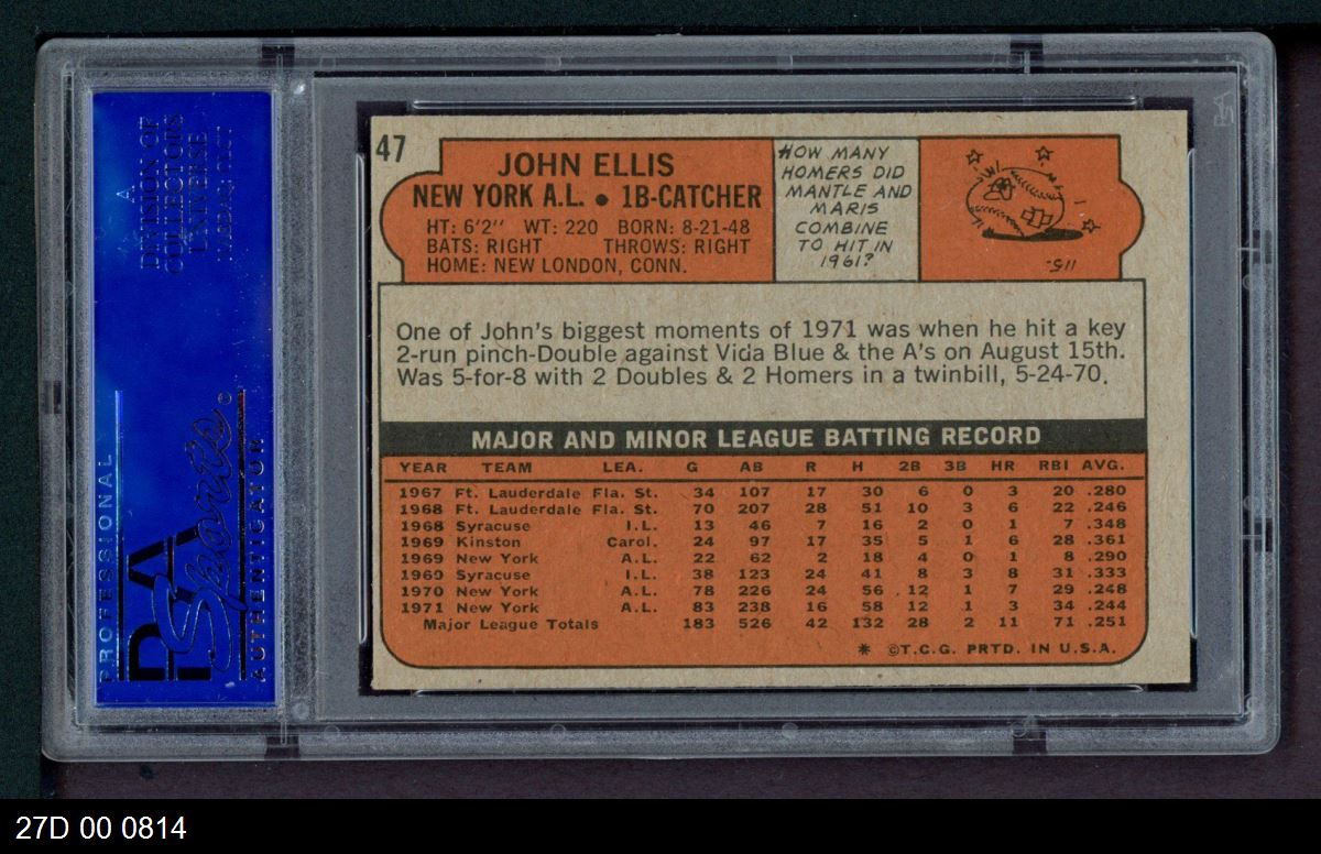 | 1972 Topps #47 John Ellis | PSA 8 - NM/MT | Front | Back |