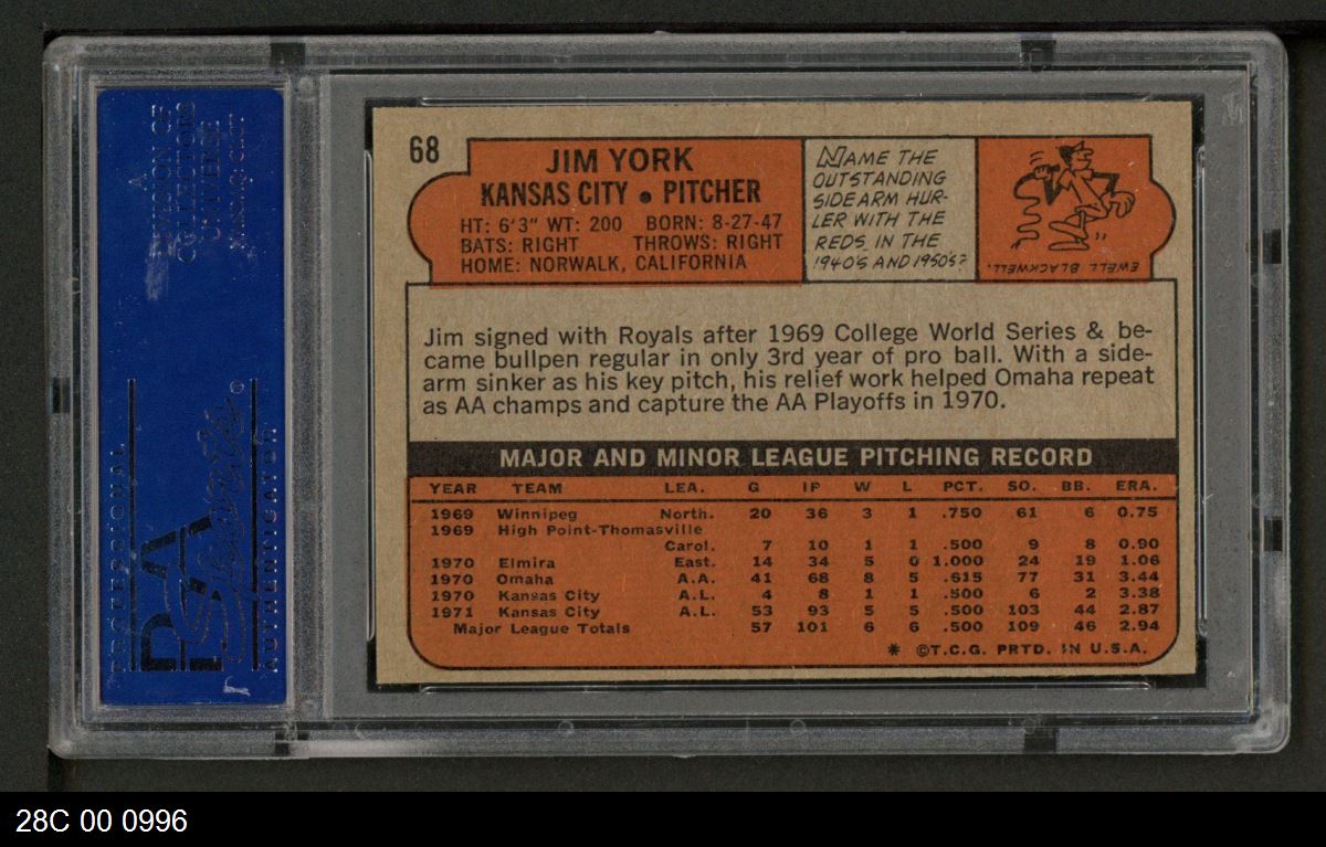 | 1972 Topps #68 Jim York | PSA 8 - NM/MT | Front | Back |