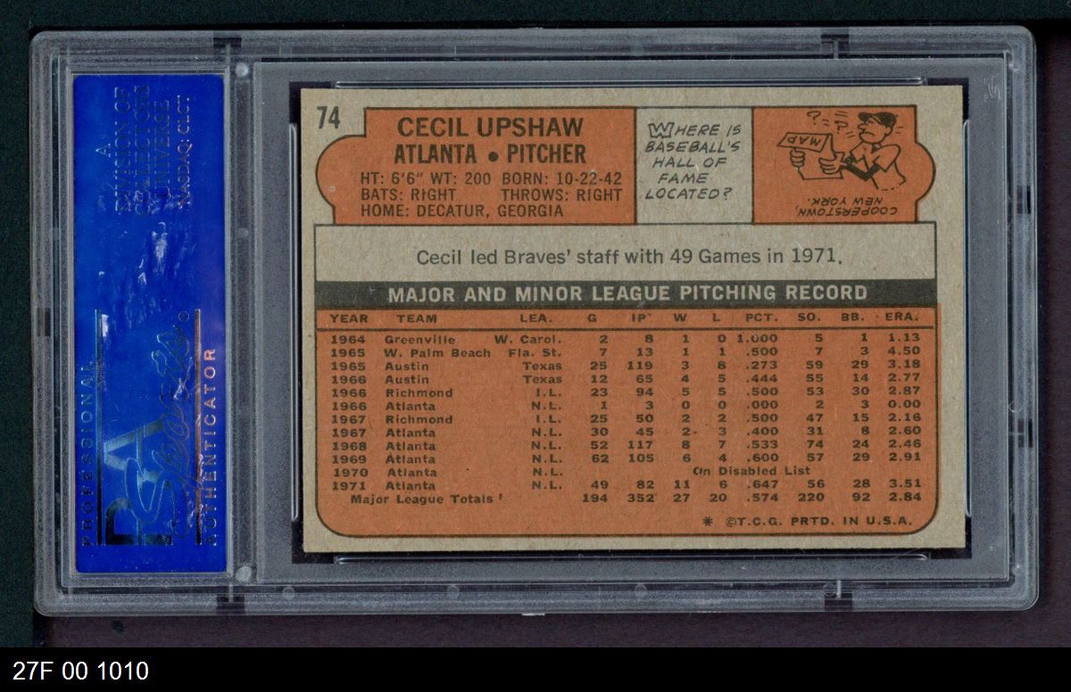 | 1972 Topps #74 Cecil Upshaw | PSA 8 - NM/MT | Front | Back |