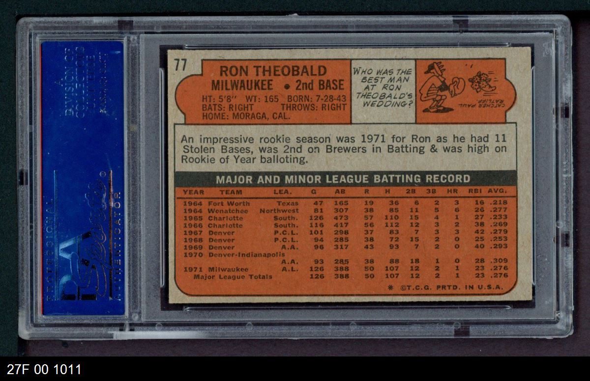 | 1972 Topps #77 Ron Theobald | PSA 8 - NM/MT | Front | Back |
