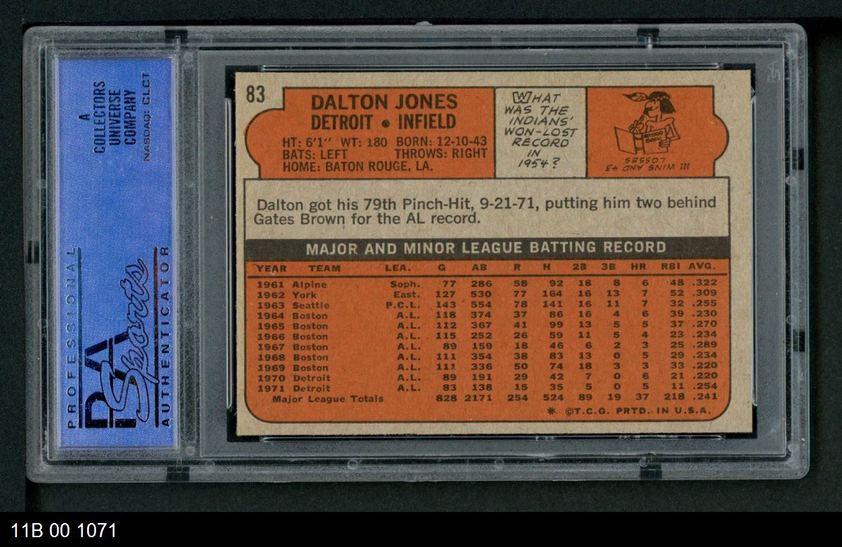 | 1972 Topps #83 Dalton Jones | PSA 8 - NM/MT | Front | Back |