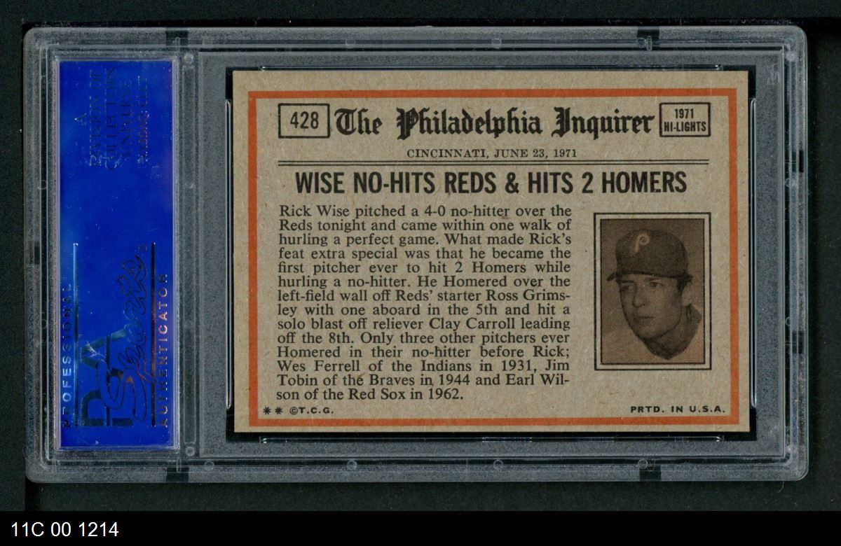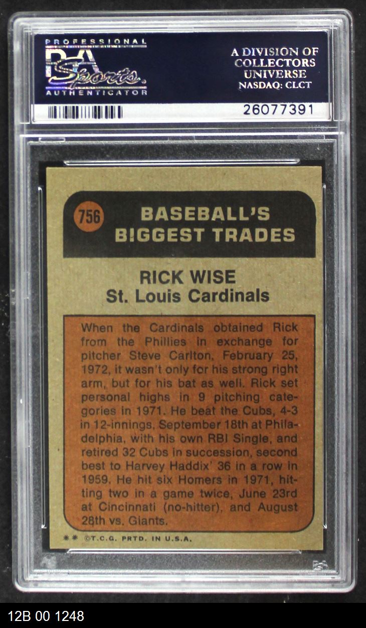 | 1972 Topps #756 - Rick Wise Traded | PSA 8 - NM/MT | Front | Back |