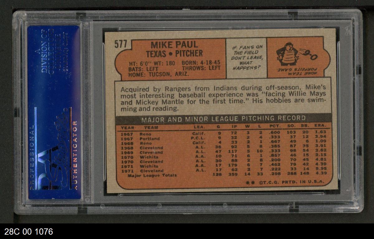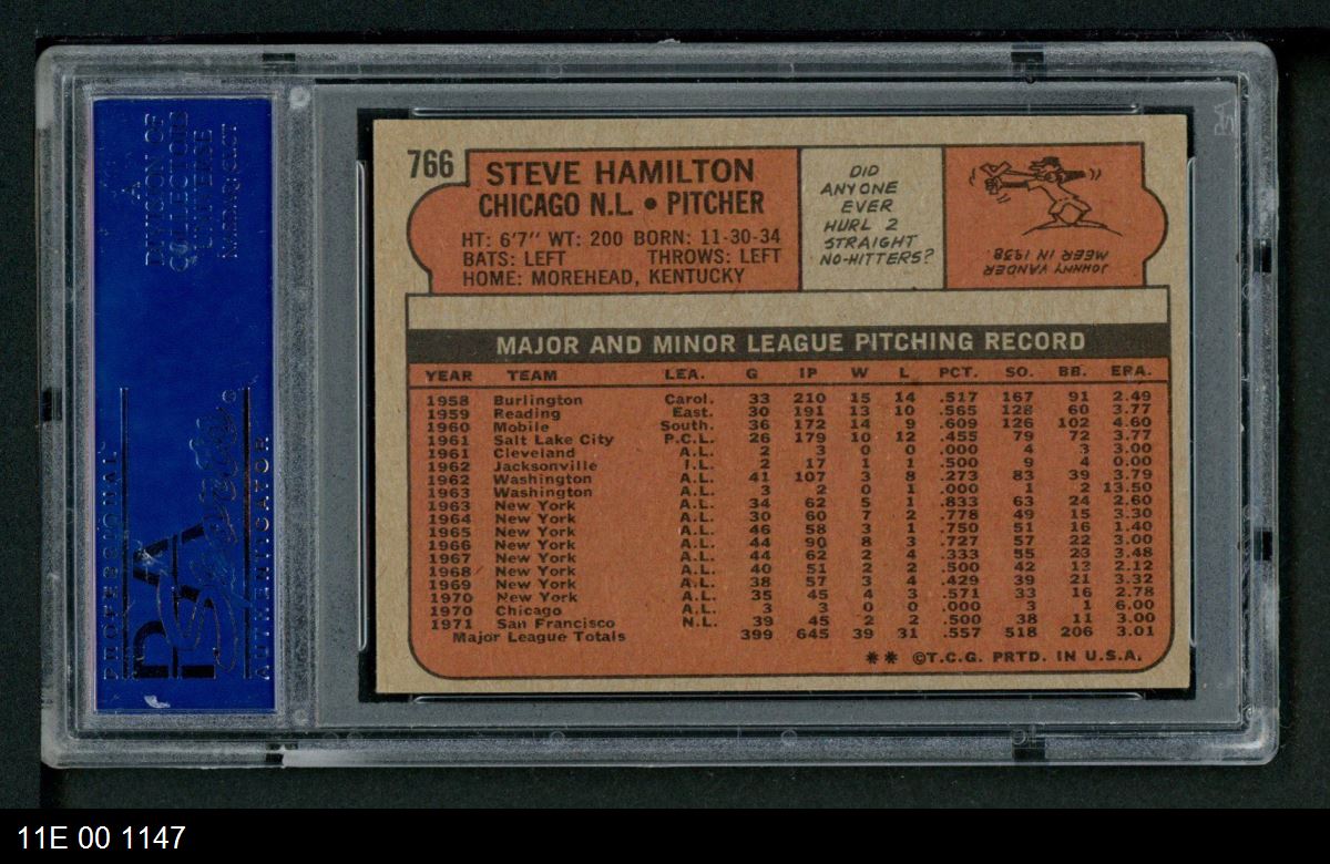 | 1972 Topps #766 Steve Hamilton | PSA 8 - NM/MT | Front | Back |