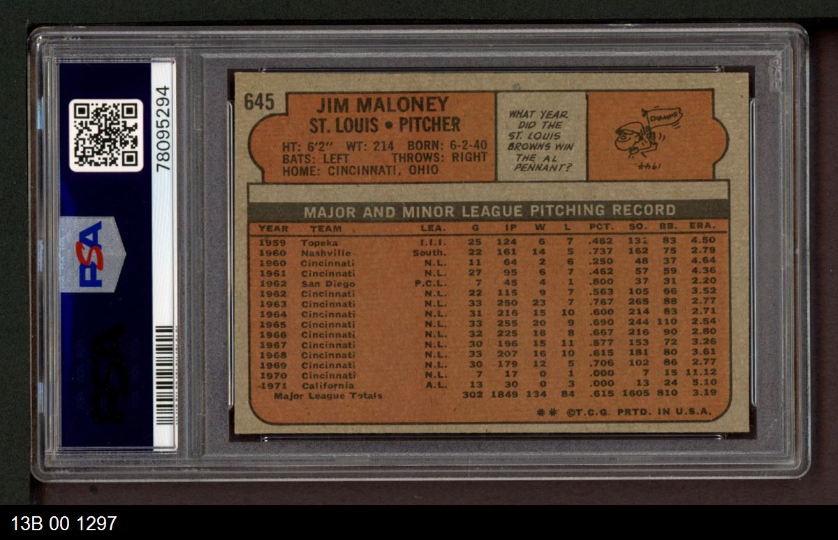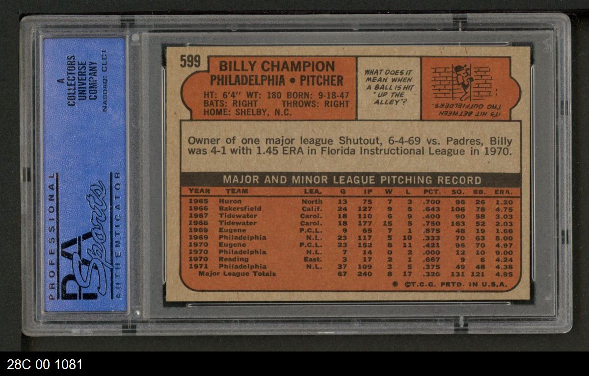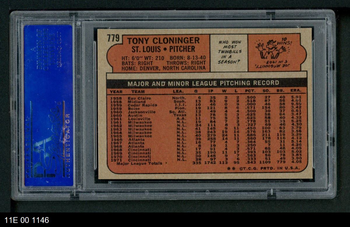 | 1972 Topps #779 Tony Cloninger | PSA 8 - NM/MT | Front | Back |