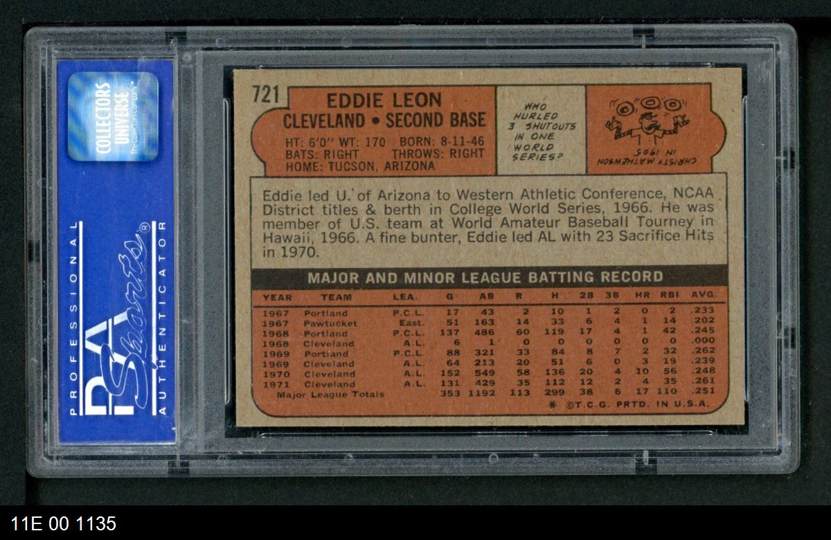 | 1972 Topps #721 Eddie Leon | PSA 8 - NM/MT | Front | Back |