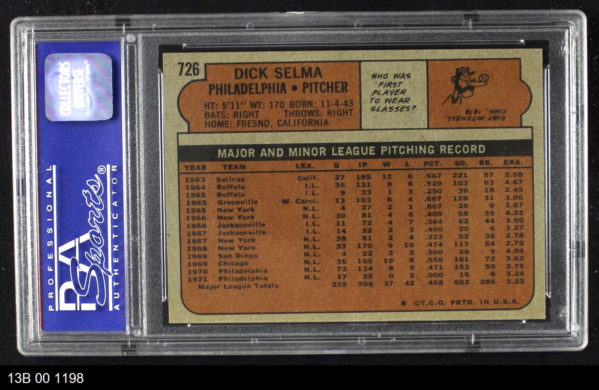 | 1972 Topps #726 Dick Selma | PSA 8 - NM/MT | Front | Back |