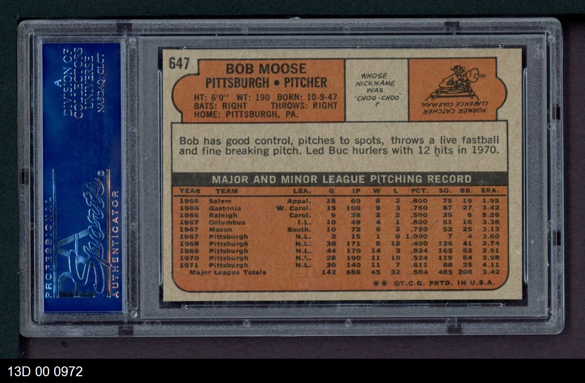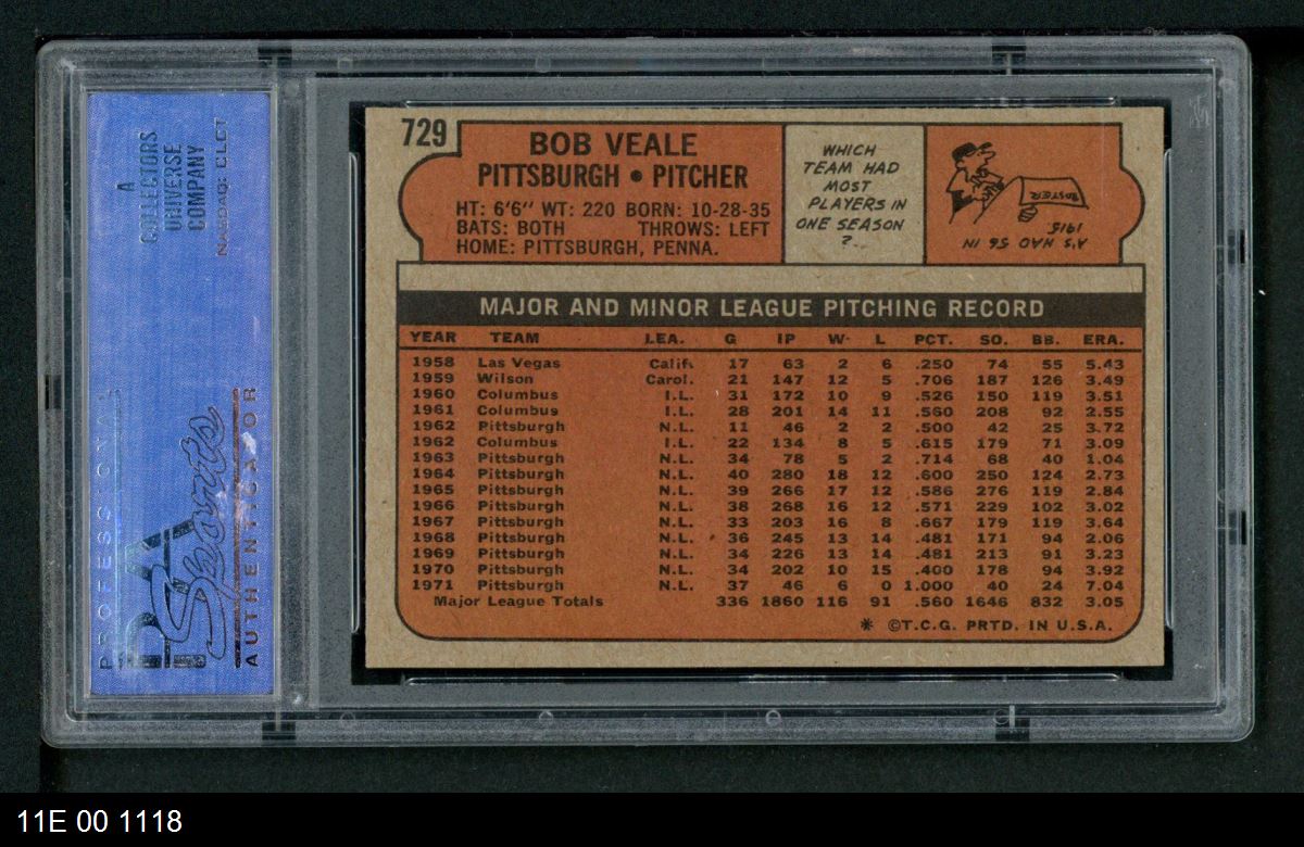 | 1972 Topps #729 Bob Veale | PSA 8 - NM/MT | Front | Back |