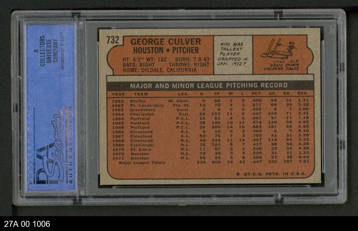 | 1972 Topps #732 George Culver | PSA 8 - NM/MT | Front | Back |