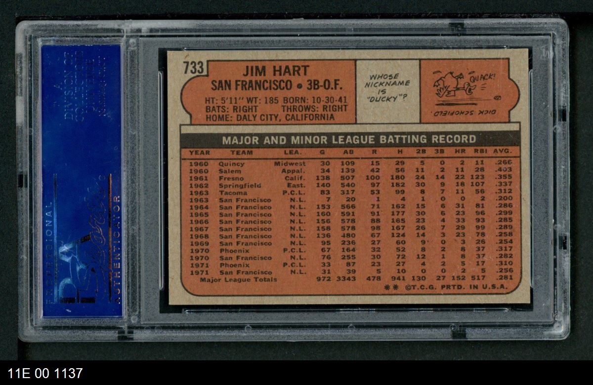 | 1972 Topps #733 Jim Ray Hart | PSA 8 - NM/MT | Front | Back |