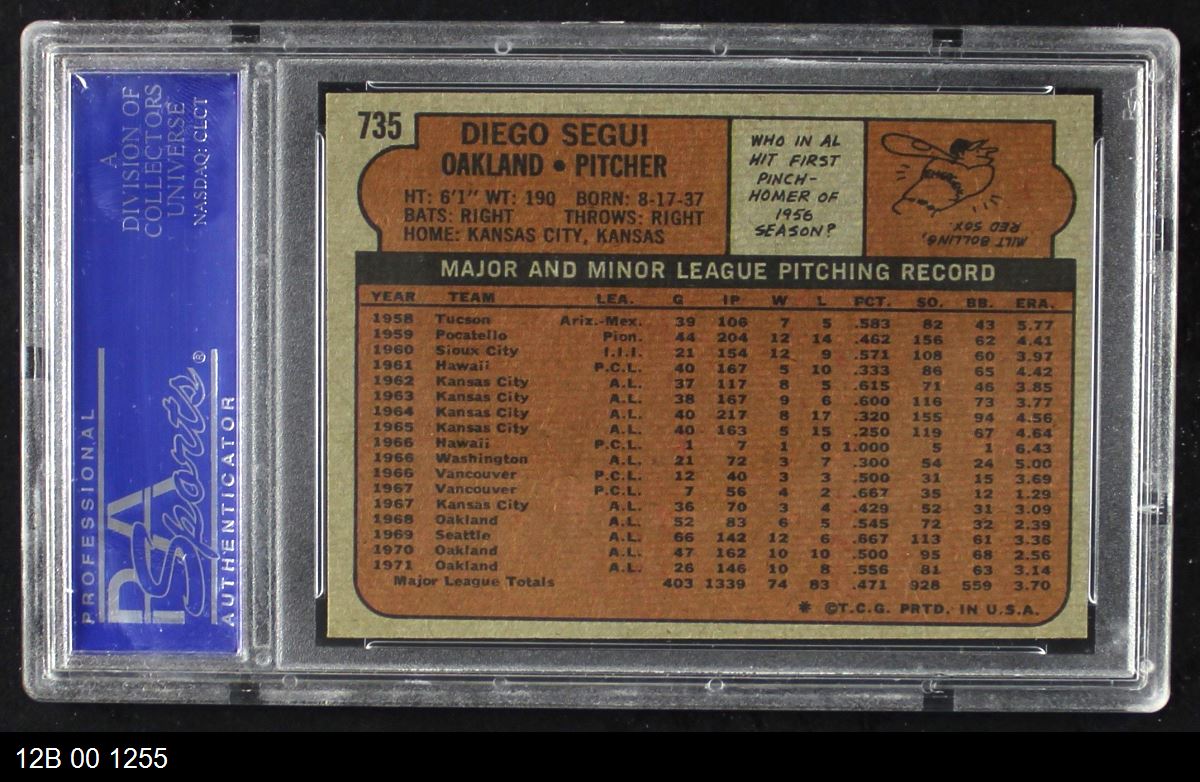 | 1972 Topps #735 Diego Segui | PSA 8 - NM/MT | Front | Back |