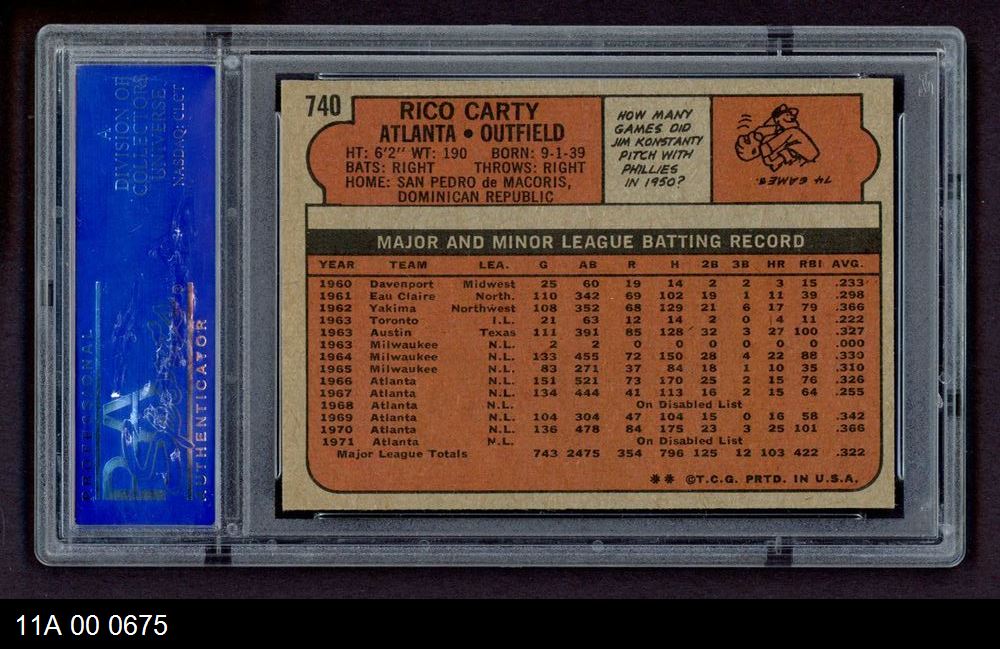 | 1972 Topps #740 Rico Carty | PSA 8 - NM/MT | Front | Back |