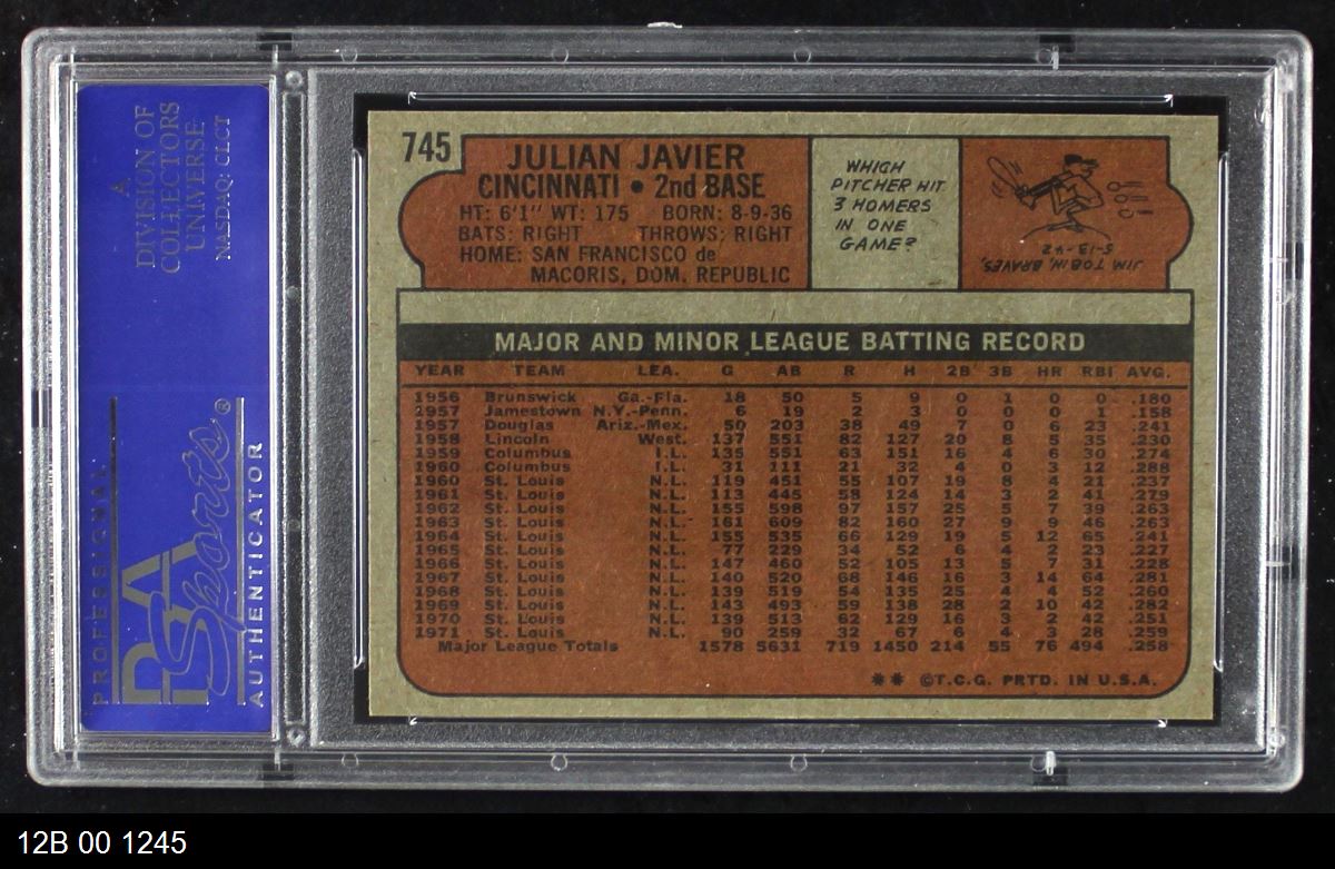 | 1972 Topps #745 Julian Javier | PSA 8 - NM/MT | Front | Back |