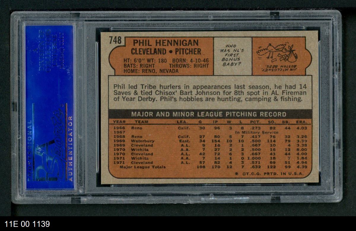 | 1972 Topps #748 Phil Hennigan | PSA 8 - NM/MT | Front | Back |