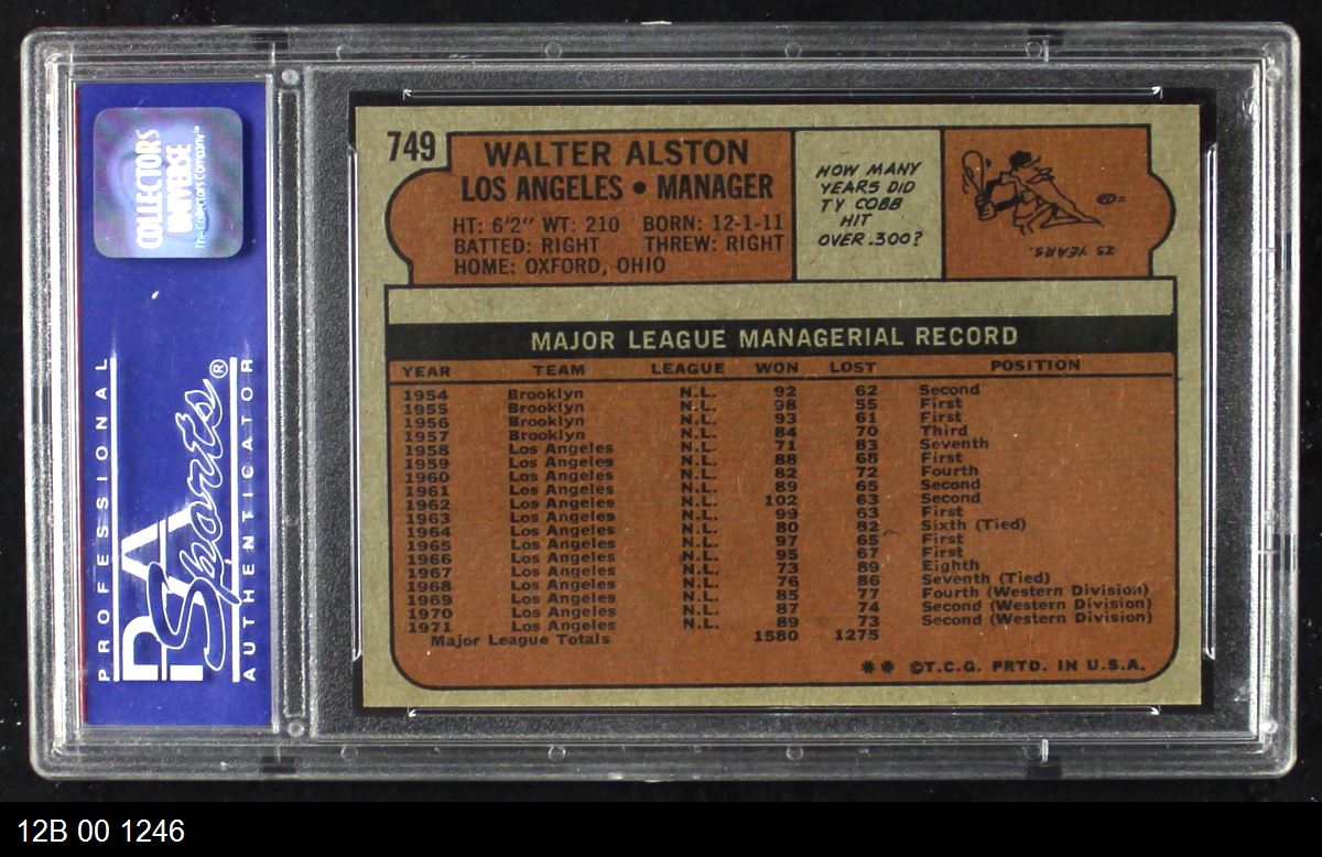 | 1972 Topps #749 Walt Alston | PSA 8 - NM/MT | Front | Back |