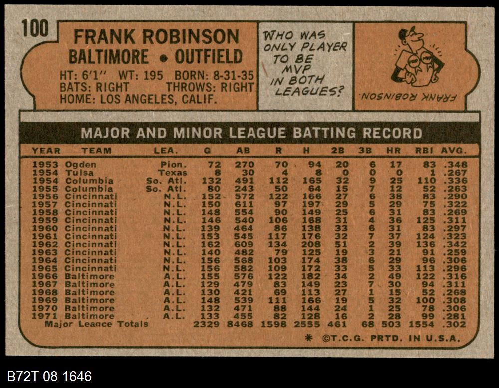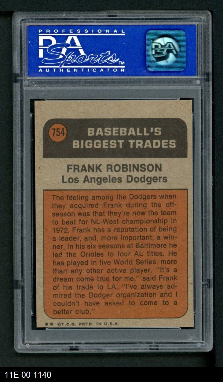 | 1972 Topps #754 - Frank Robinson Traded | PSA 8 - NM/MT | Front | Back |