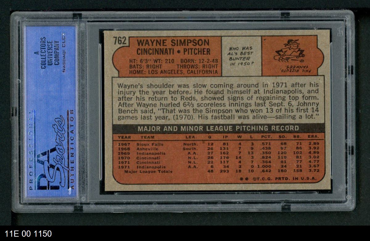 | 1972 Topps #762 Wayne Simpson | PSA 8 - NM/MT | Front | Back |