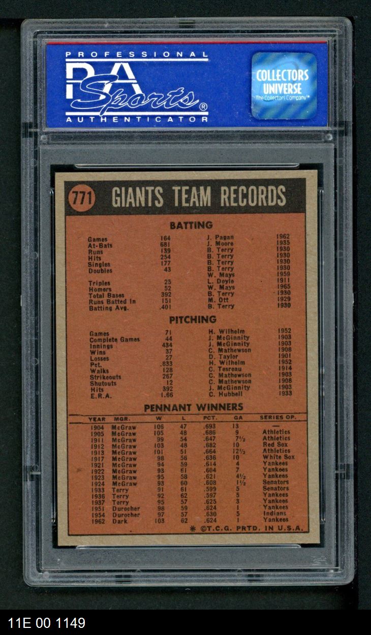 | 1972 Topps #771 Giants Team | PSA 8 - NM/MT | Front | Back |