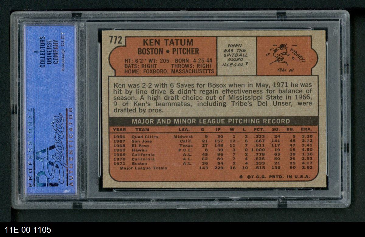 | 1972 Topps #772 Ken Tatum | PSA 8 - NM/MT | Front | Back |