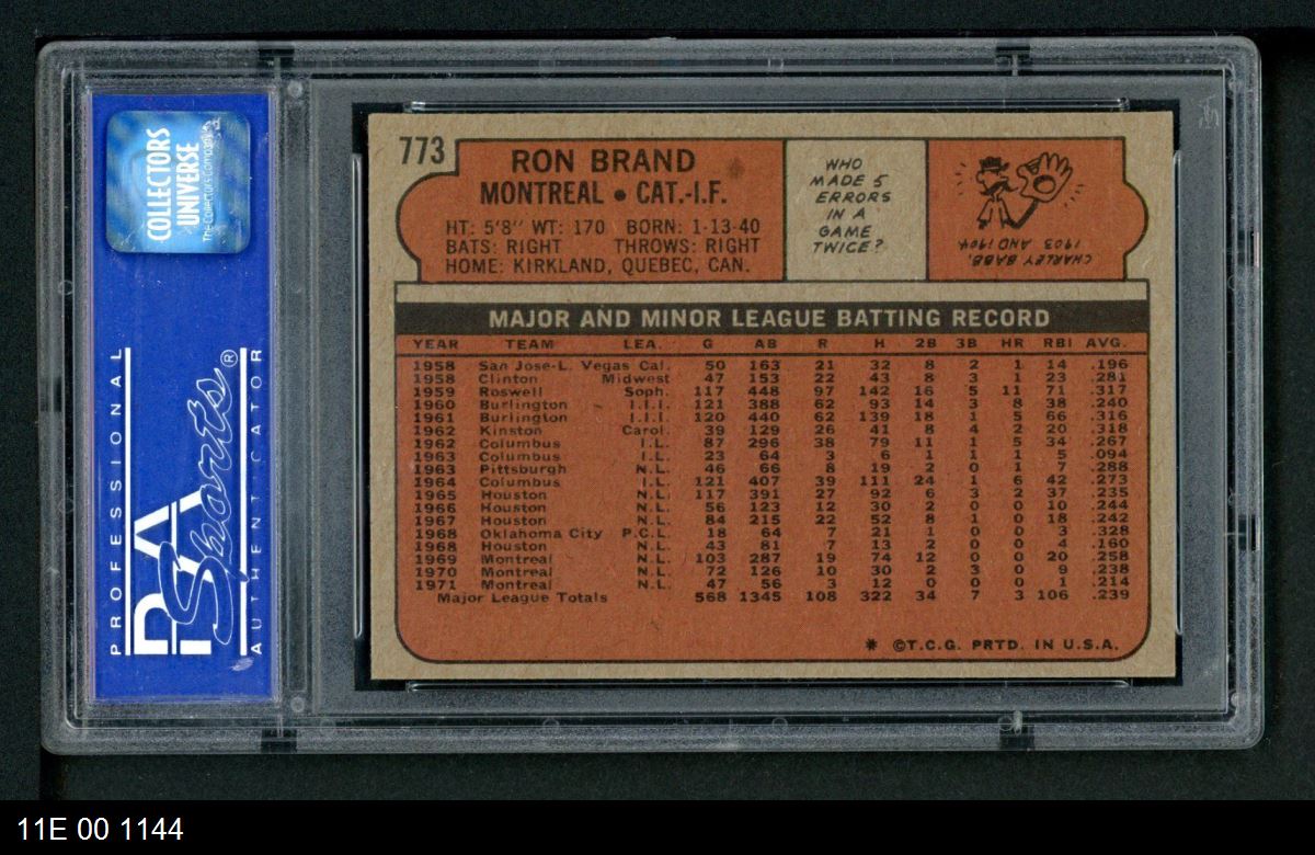 | 1972 Topps #773 Ron Brand | PSA 8 - NM/MT | Front | Back |